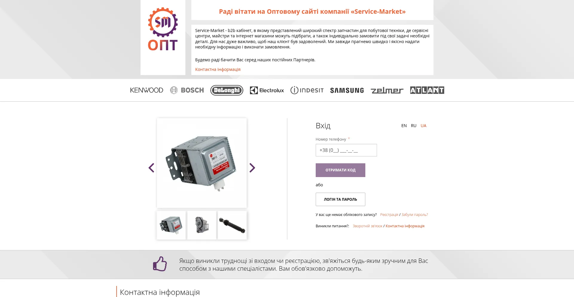 Запчастини для побутової техніки ОПТОМ | СМ ОПТ | Особистий кабінет SM-OPT - вхід по телефону