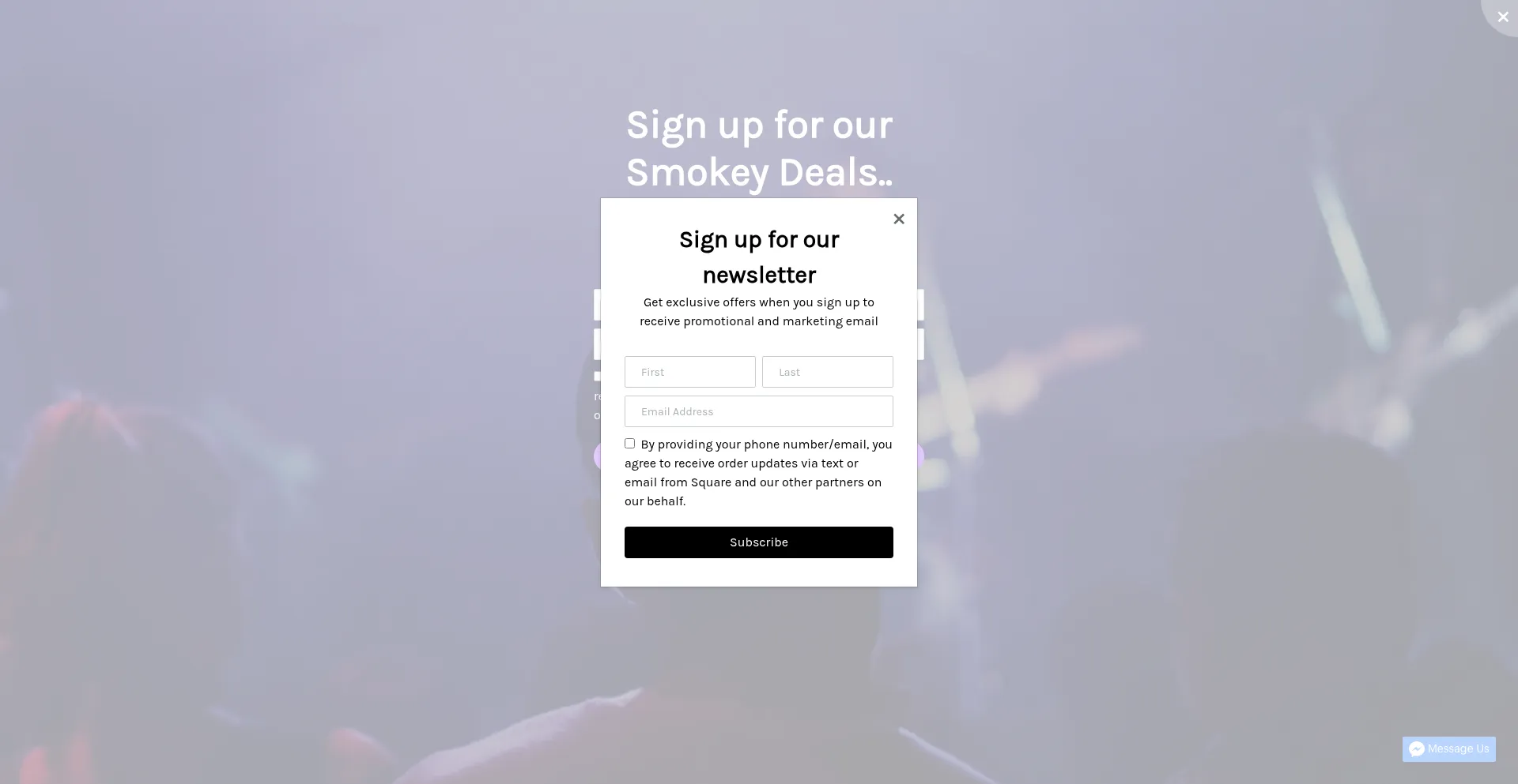 El sitio web implementa formularios de recolección de datos solicitando información personal incluyendo nombres, direcciones de correo electrónico, números de teléfono u otros detalles sensibles. Los usuarios deben verificar la legitimidad de smokeyjonessmokeshop.com y revisar políticas de privacidad antes de enviar datos personales.