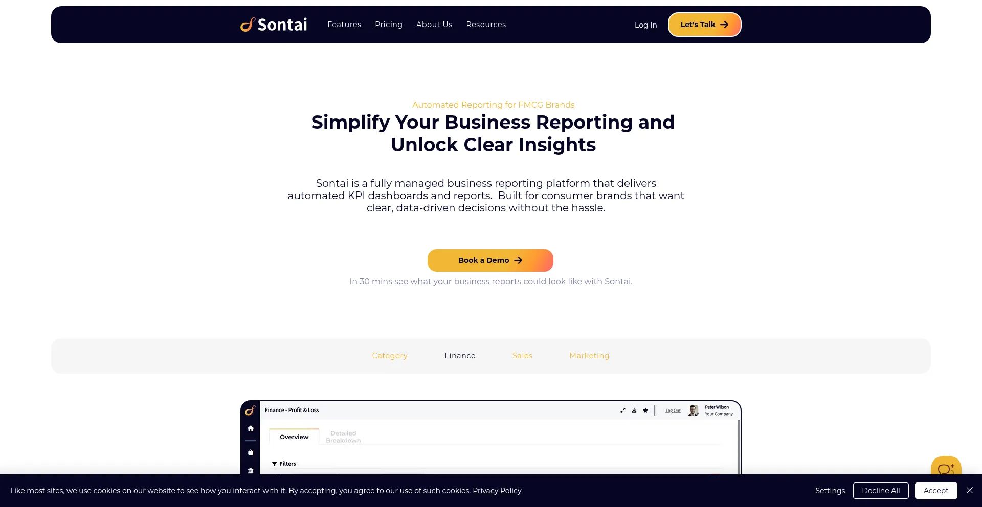 Simplify your business reporting with Sontai’s automated dashboards. Turn data into clear insights, save time, and make smarter decisions. Book a demo today.