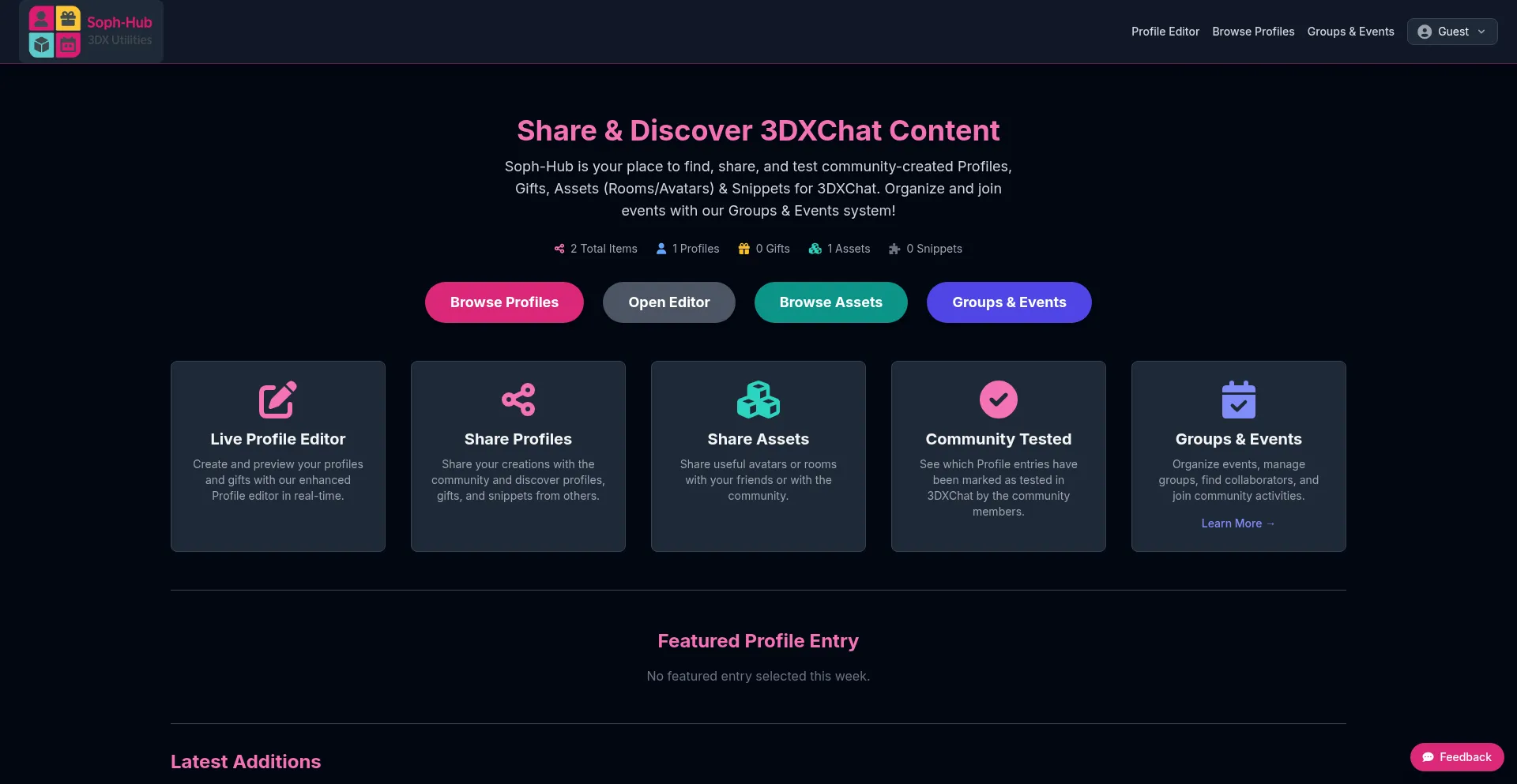Soph-Hub | 3DXChat Profiles, Gifts, Assets, Groups, Events & Snippets Sharing