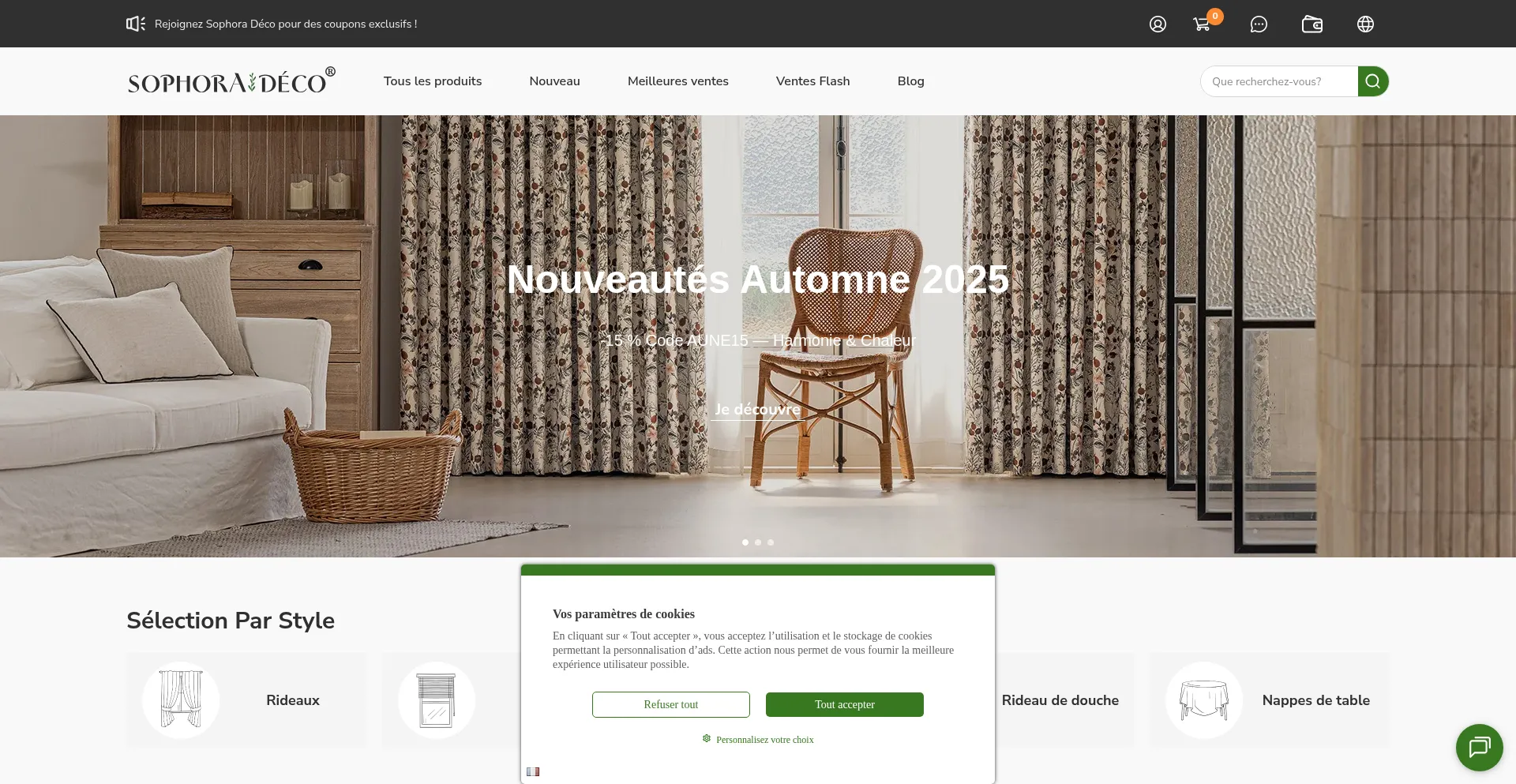 Sophora Déco propose les tendances déco sur-mesure. Découvrez nos rideaux, voilages, stores, linge de lit, table, coussins. Livraison gratuite dès 59€.