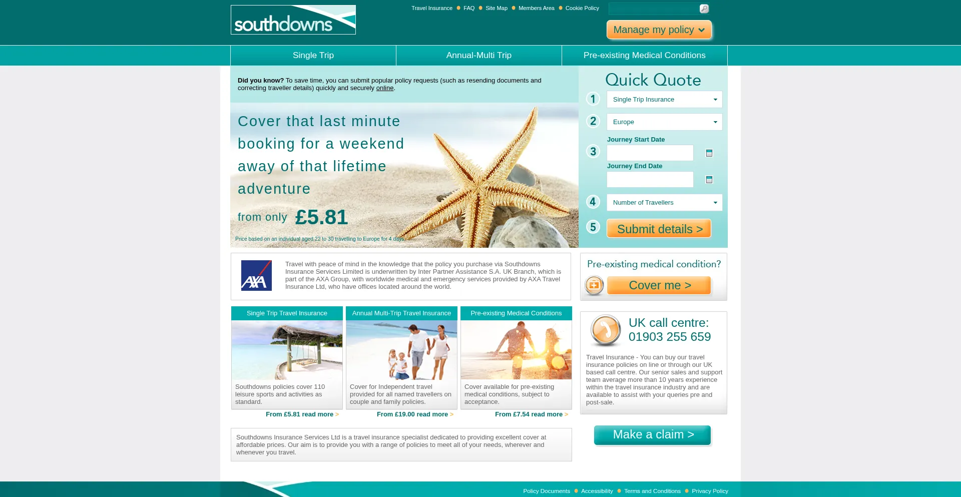Southdowns Travel Insurance - Experienced at providing great value, comprehensive travel insurance prices, from as little as £1.76.