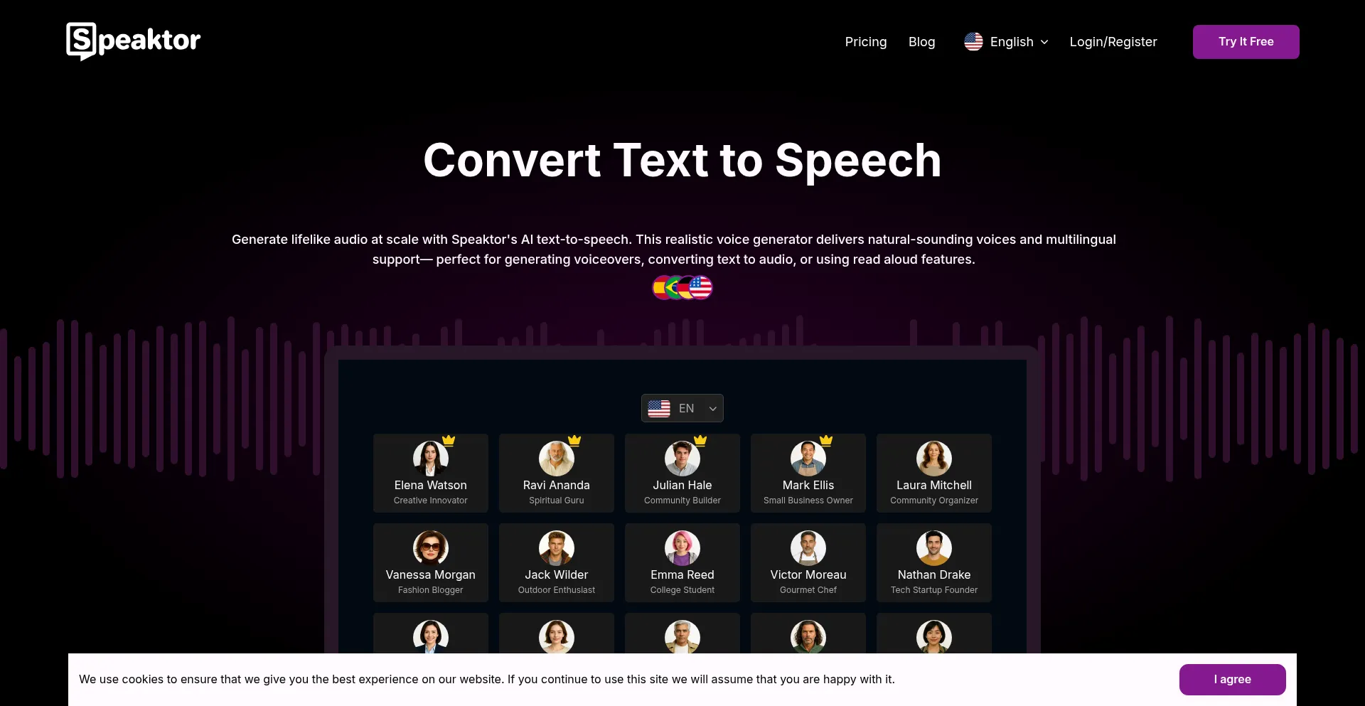 Turn text into natural-sounding speech with Speaktor. Create lifelike voiceovers for videos, podcasts, and more using AI-powered text-to-speech technology!