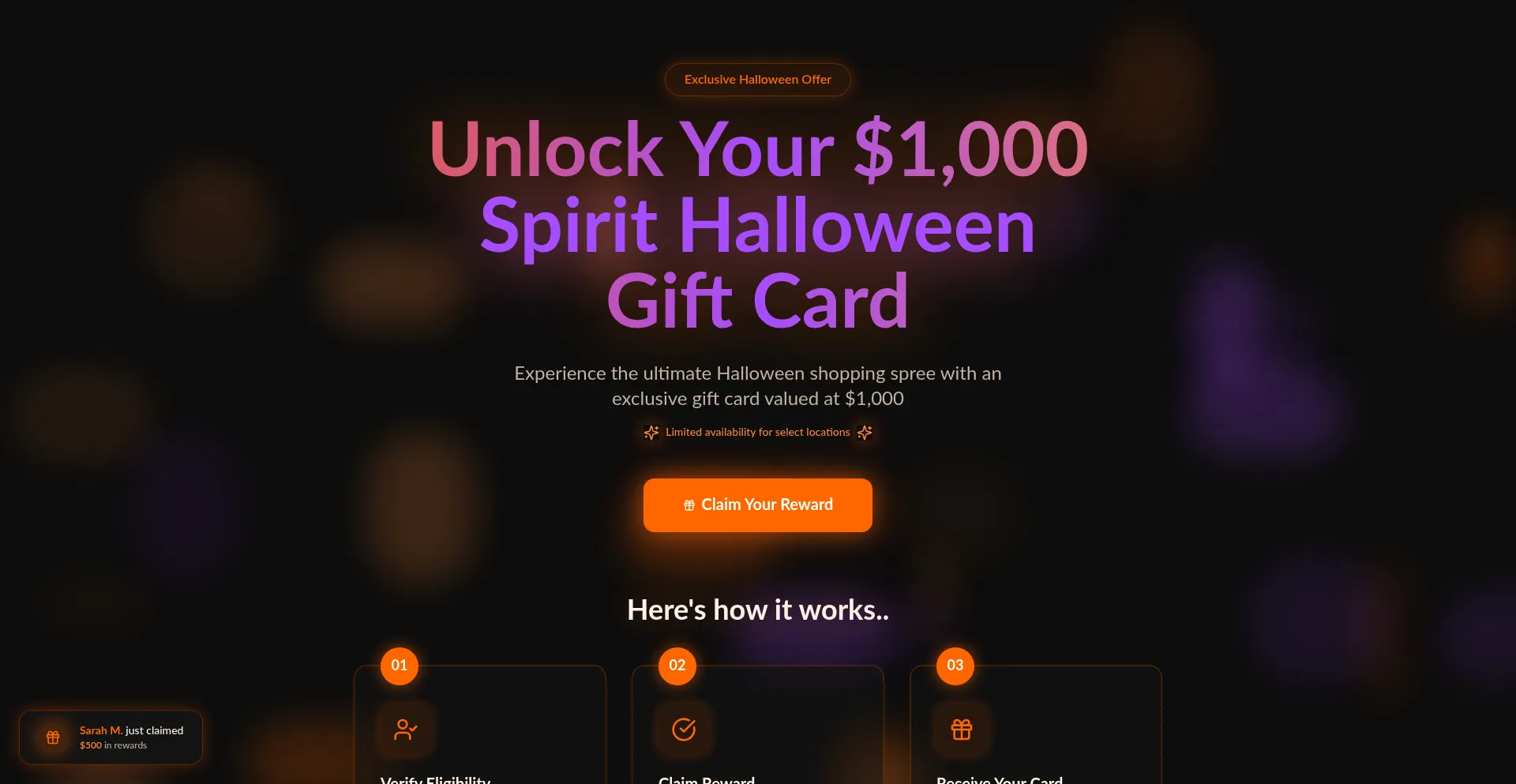 Unlock your exclusive $1,000 Spirit Halloween gift card. Available for residents in the US only. Claim your reward today.
