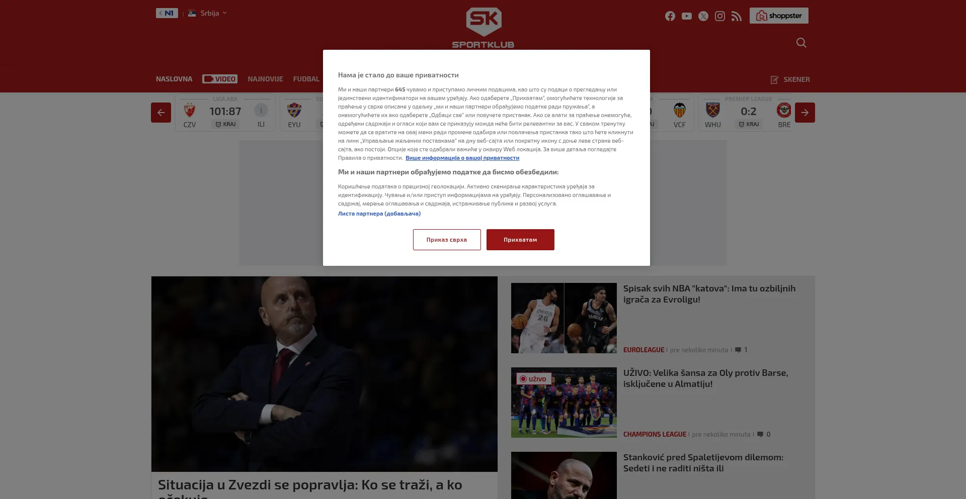 El sitio web implementa mecanismos de consentimiento de cookies en cumplimiento con regulaciones de privacidad como GDPR o CCPA. Esto demuestra que sportklub.rs adhiere a estándares de protección de datos y proporciona a los usuarios control sobre prácticas de recolección de datos personales.