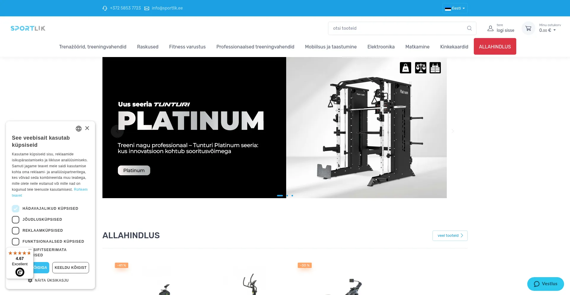 Soodsa hinnaga sporditarbed ja varustus - Sportlik.ee - Sportlik.ee