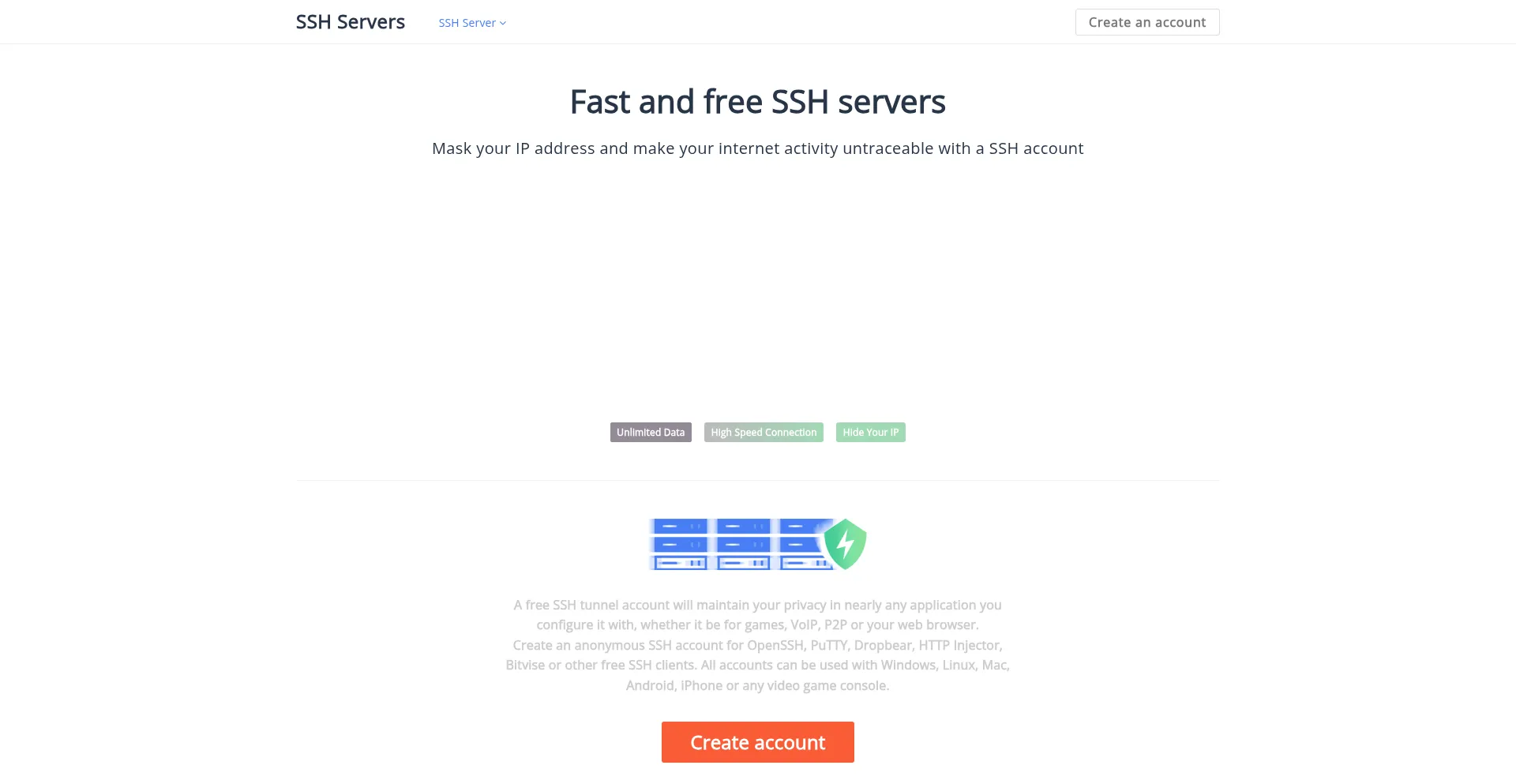 SSH Servers let you create free and fast SSH accounts. Create 1 month SSH accounts with all premium SSH servers in locations worldwide (30+)