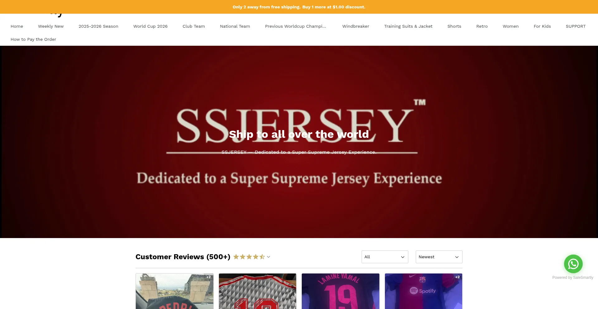 ssjersey.com provides the best shopping experience for football jerseys. We are always striving for sharing our passion with you. © 2025 SS Jersey. Free Shipping at 2 items