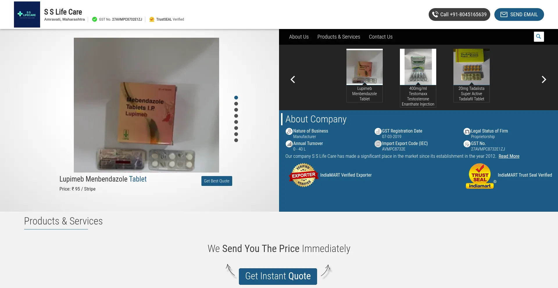 Exporter of Pharmaceutical Tablets, Sildenafil Tablets & Steroid Injections offered by S S Life Care from Amravati, Maharashtra, India