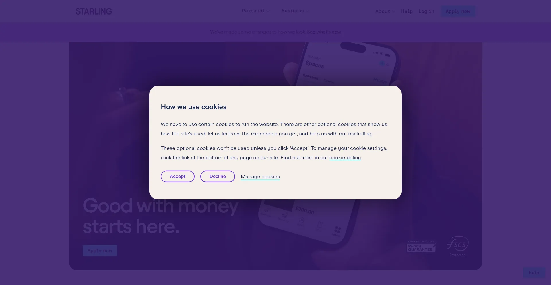 El sitio web implementa mecanismos de consentimiento de cookies en cumplimiento con regulaciones de privacidad como GDPR o CCPA. Esto demuestra que starlingbank.com adhiere a estándares de protección de datos y proporciona a los usuarios control sobre prácticas de recolección de datos personales.