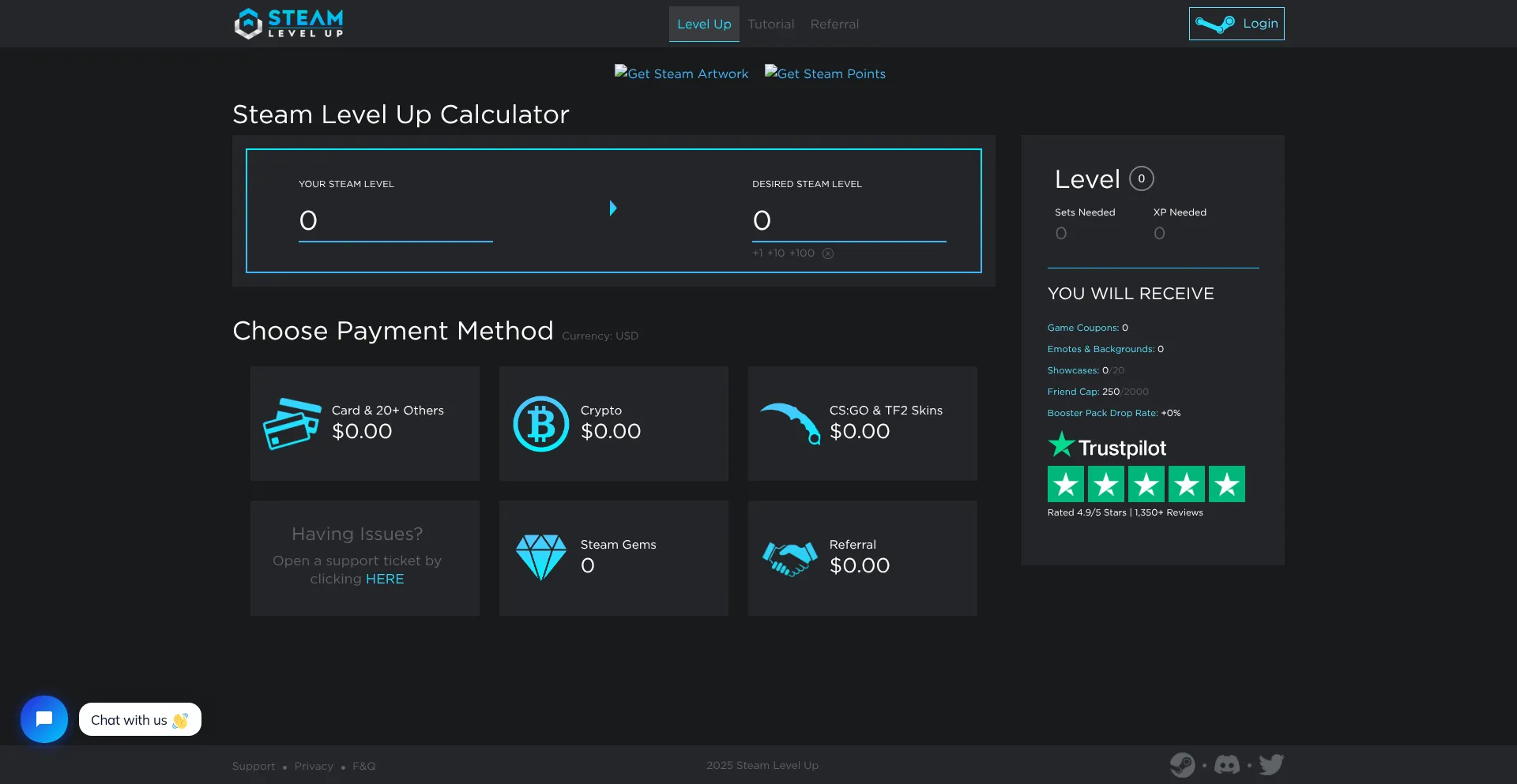 The Cheapest and Fastest Way to Level Up Your Steam Profile. Buy Steam Levels with Card, Crypto, CS2 Skins, and Steam Gems!