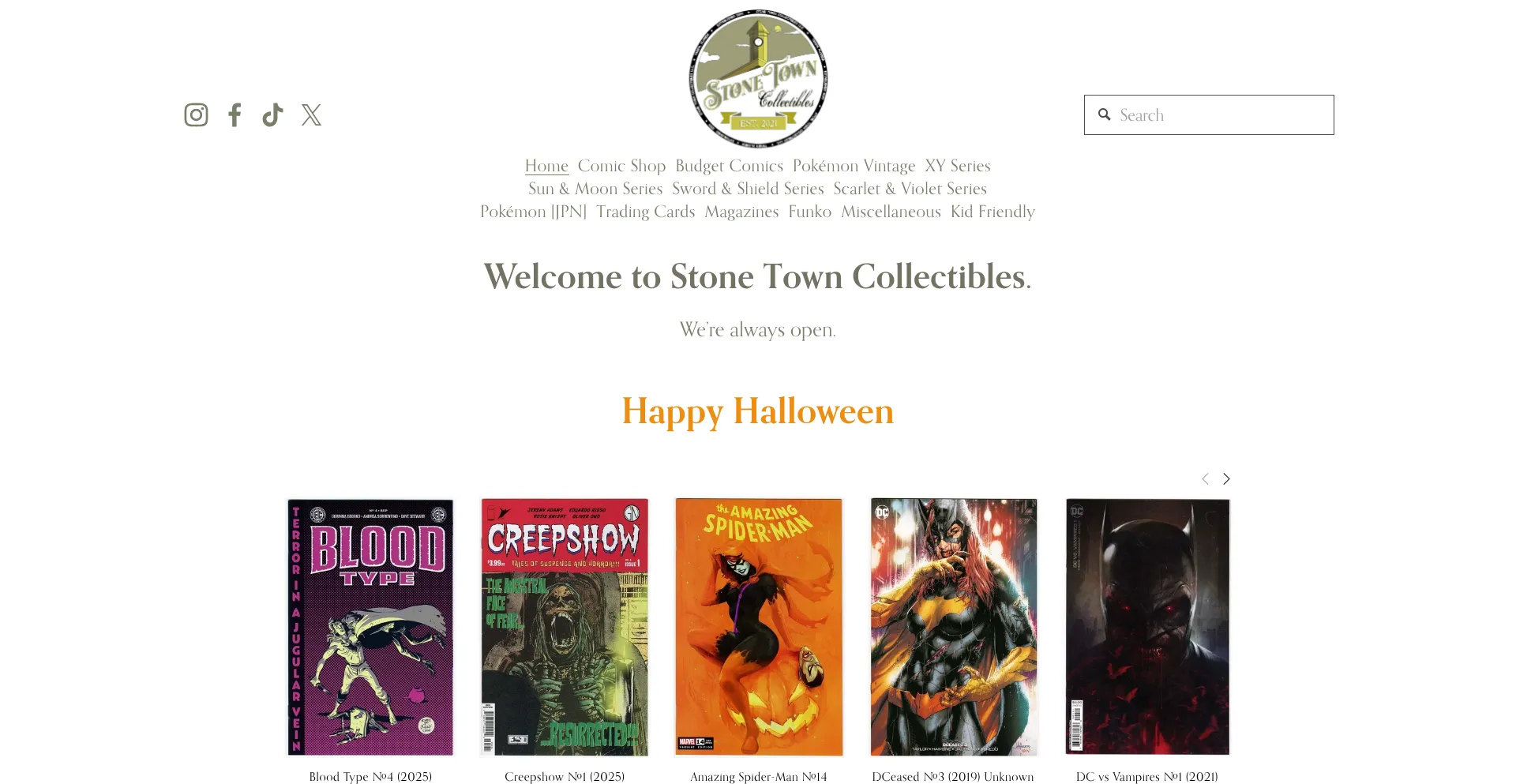 Your 24 hour On-line Collectibles store near you featuring Comic Books, Trading Cards and Funko Pops.