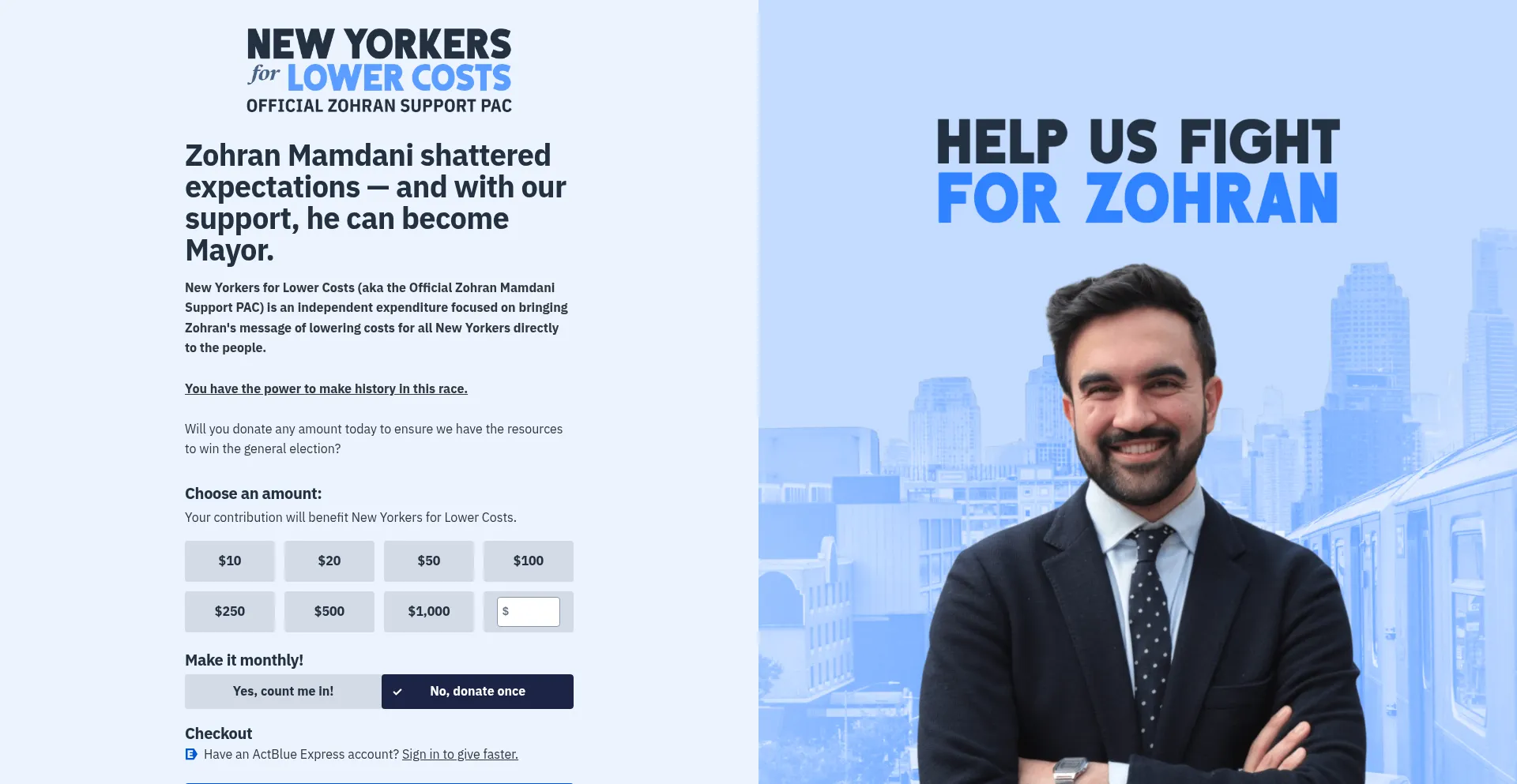 New Yorkers for Lower Costs — Donate via ActBlue