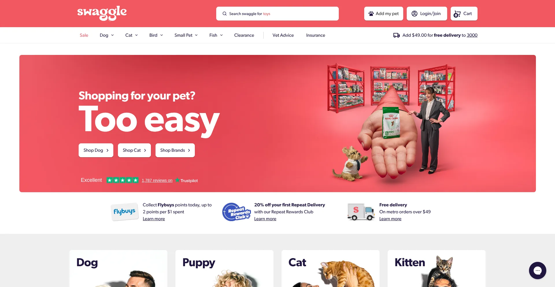 Swaggle is the online pet store making pet parenting easy. Shop recommended products from top brands, earn Flybuys & never run out of pet supplies.