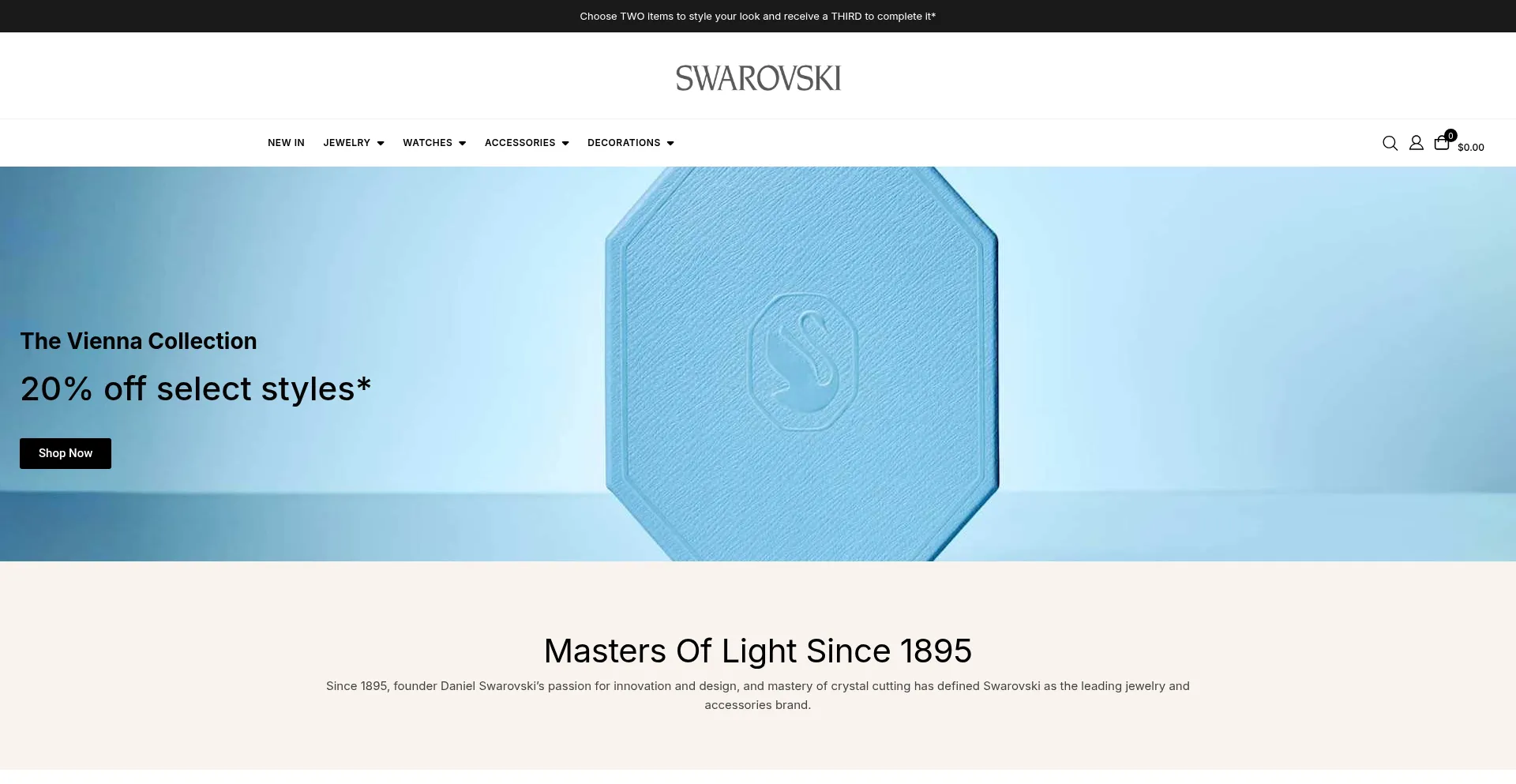 Step into the magical world of Swarovski: charming jewelry, elegant watches and sparkling crystal creations commemorate the brand's tradition and craftsmanship.