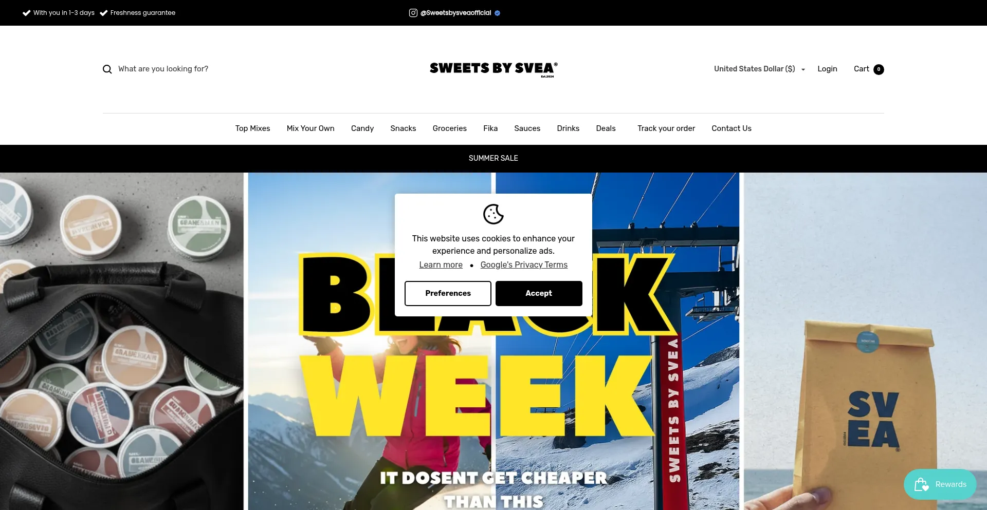 El sitio web implementa mecanismos de consentimiento de cookies en cumplimiento con regulaciones de privacidad como GDPR o CCPA. Esto demuestra que sweetsbysvea.com adhiere a estándares de protección de datos y proporciona a los usuarios control sobre prácticas de recolección de datos personales.