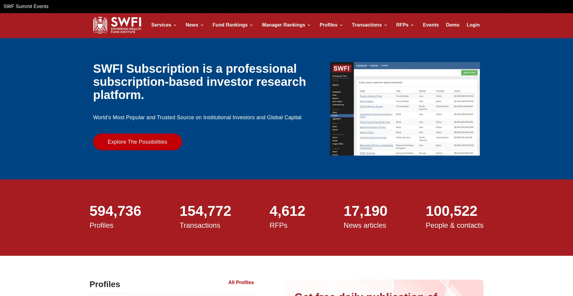 SWFI is an investor research platform offering family offices, private equity firms, banks, and institutional investors actionable news, insights, and data.