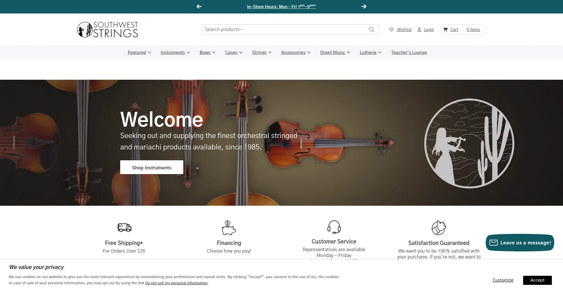 Specialized supplier of violins, violas, cellos, basses, bows, mariachi instruments, strings & accessories. Our commitment to quality, customer satisfaction, and education has m...