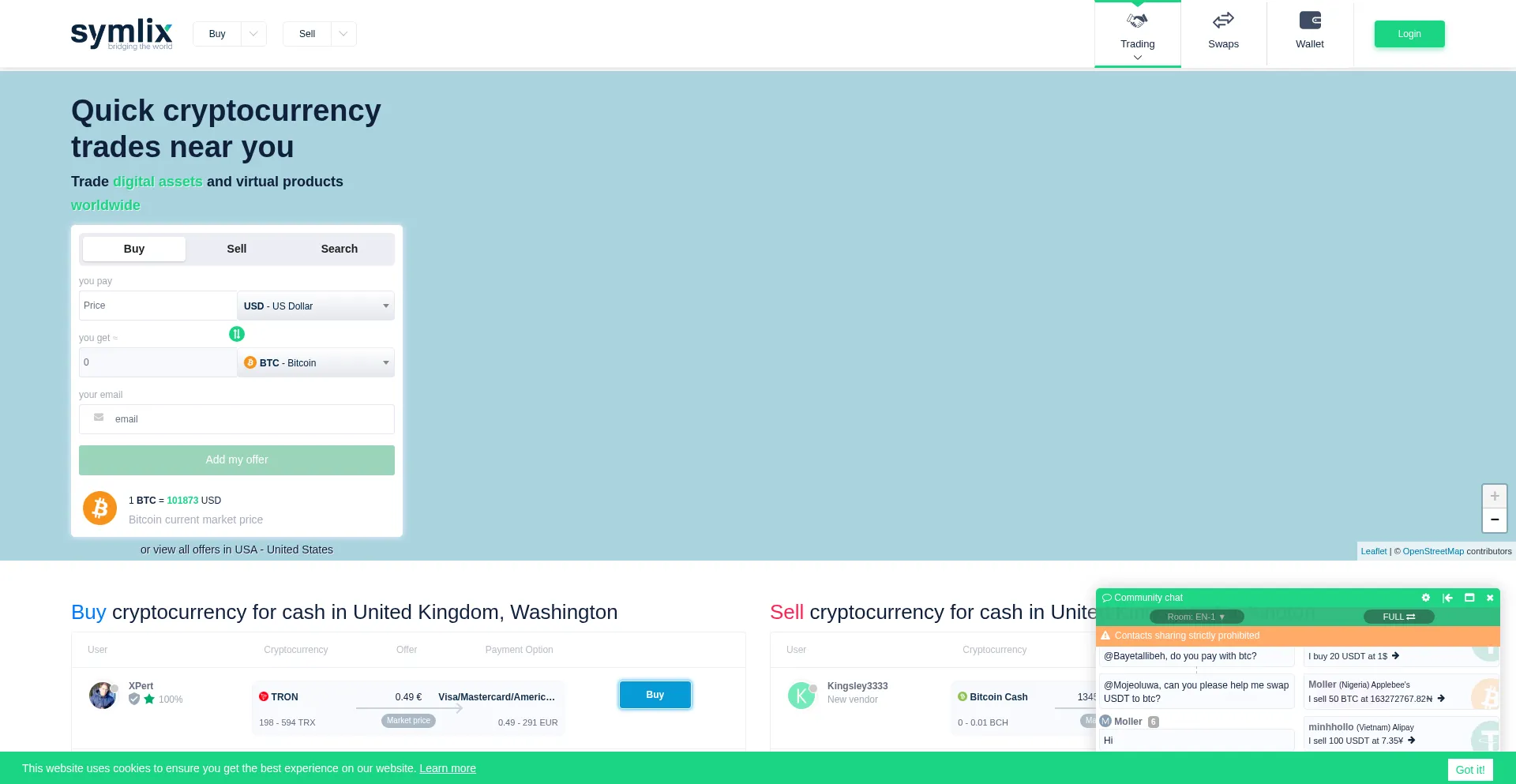 Buy, sell or exchange cryptocurrency instantly through our safe marketplace. Large network of local traders across the globe available to trade online or with cash