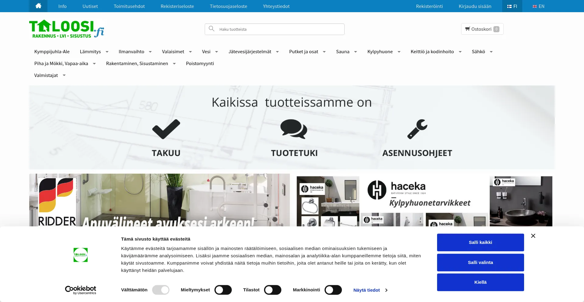 LVI-, rakennus- ja sisustustuotteiden verkkokauppaa vuodesta 2009 - Taloosi.fi
