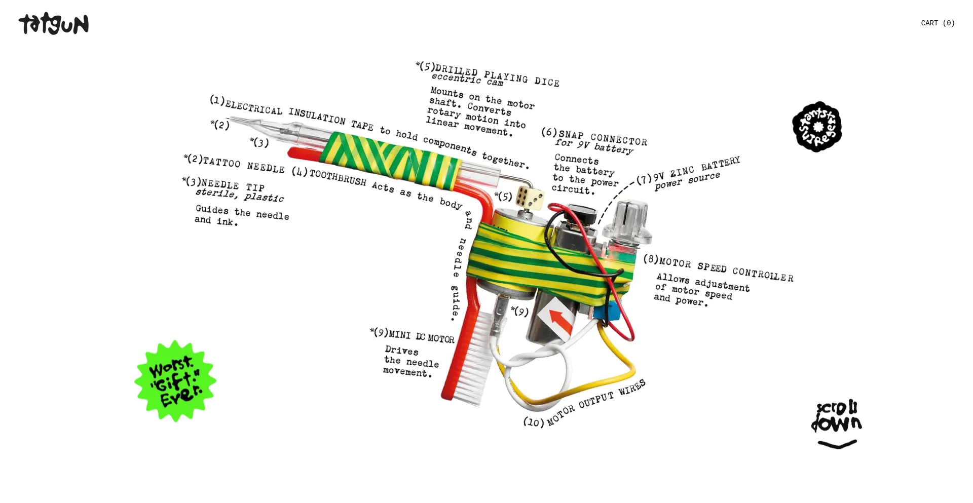 TATGUN – DIY Prison Tattoo Machine Kit | Worst Gift Ever Build your own prison-style tattoo machine. Sterile, functional, and 100% questionable. The world’s worst gift, ship...