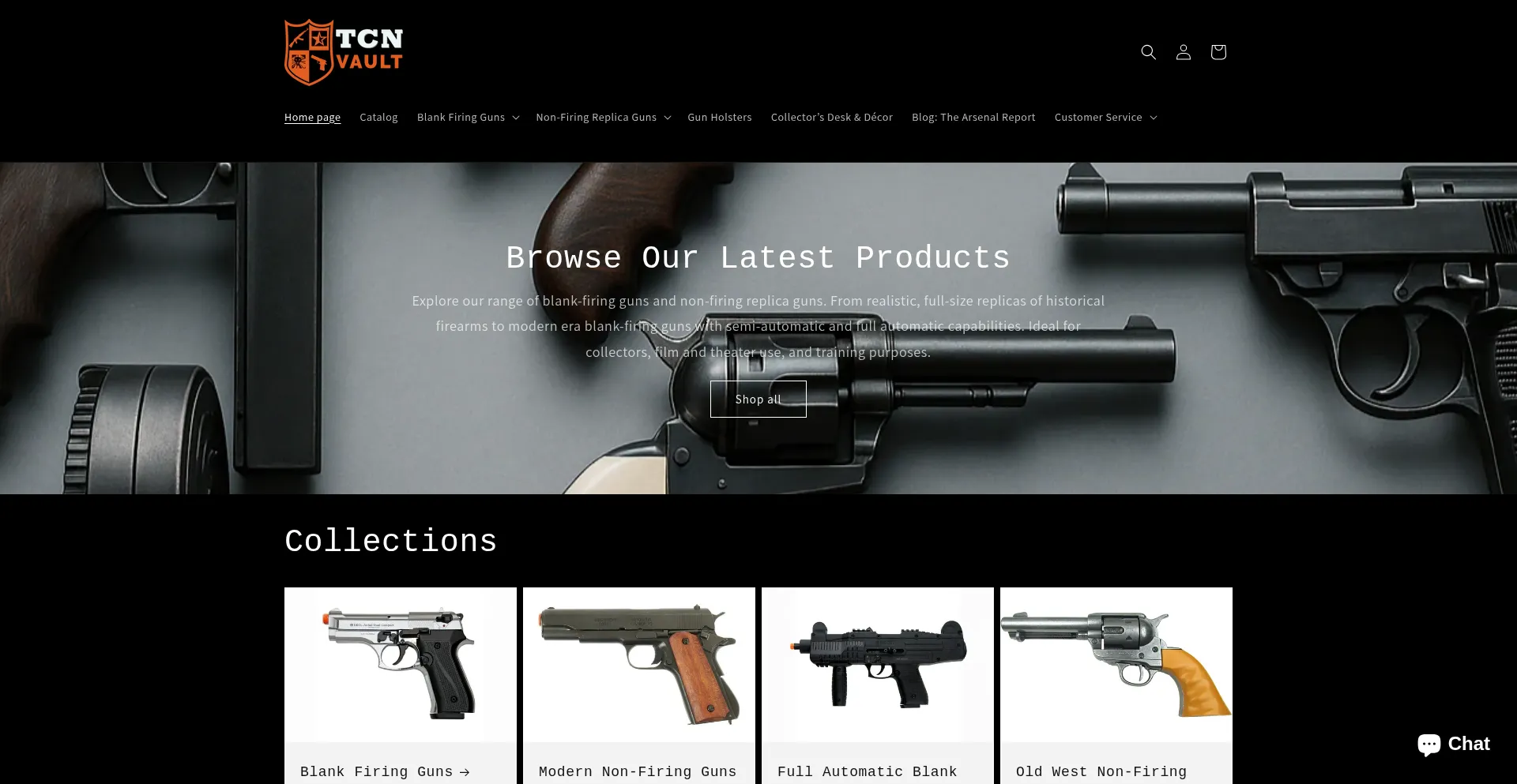 TCN VAULT offers for sale high-quality blank firing guns & non-firing guns for collectors, film, theater, training & reenactments. Brands: Denix, EKOL, Zoraki, Bruni.