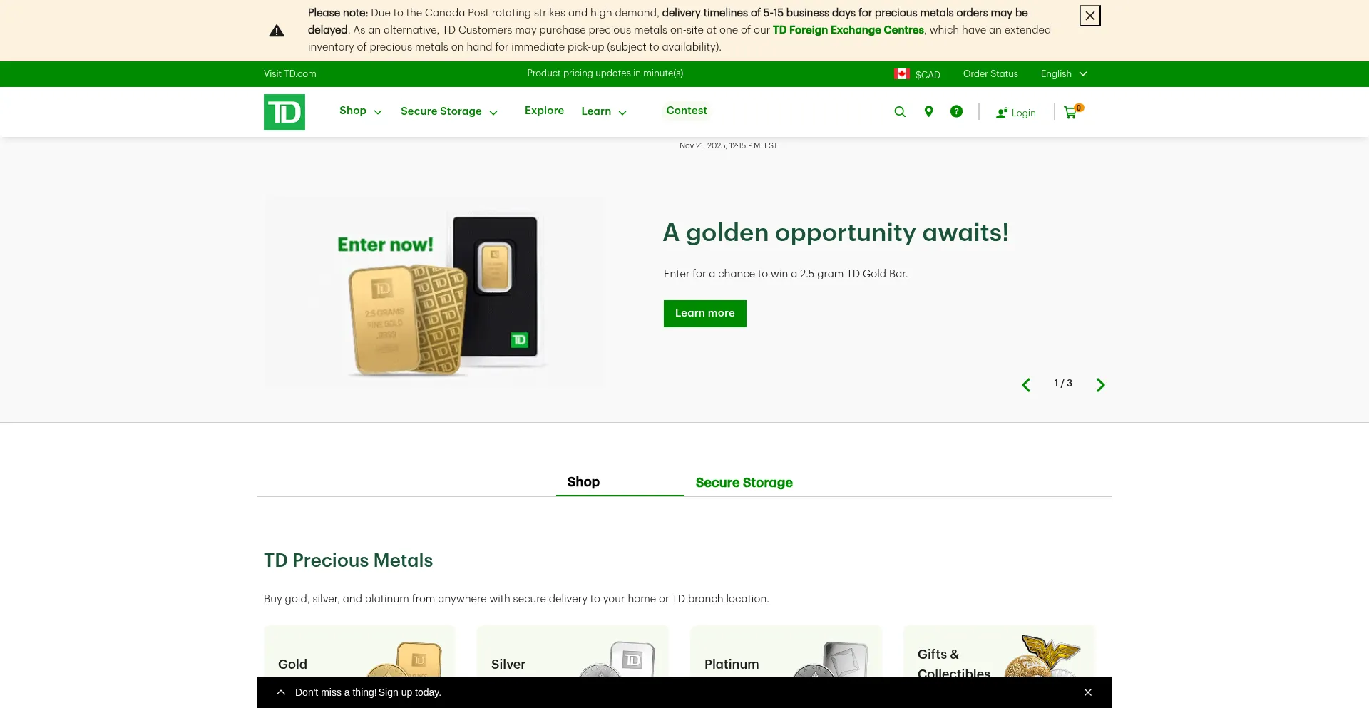 Buy Gold, Silver and Platinum Bullion, Coins, and Bars Online | TD Precious Metals