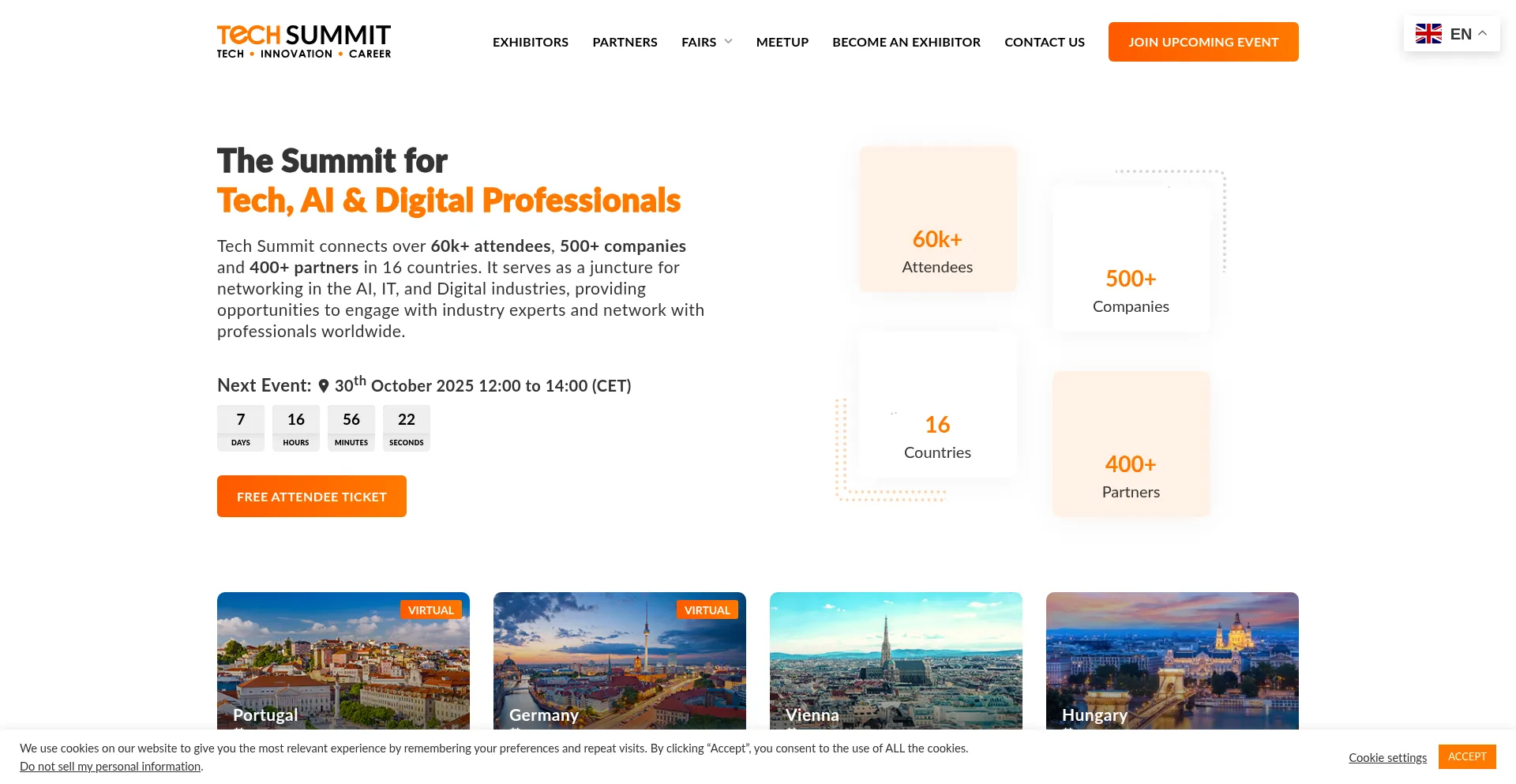 Tech Summit connects over 60k+ attendees, 500+ companies and 400+ partners in 16 countries. It serves as a juncture for networking in the AI, and more