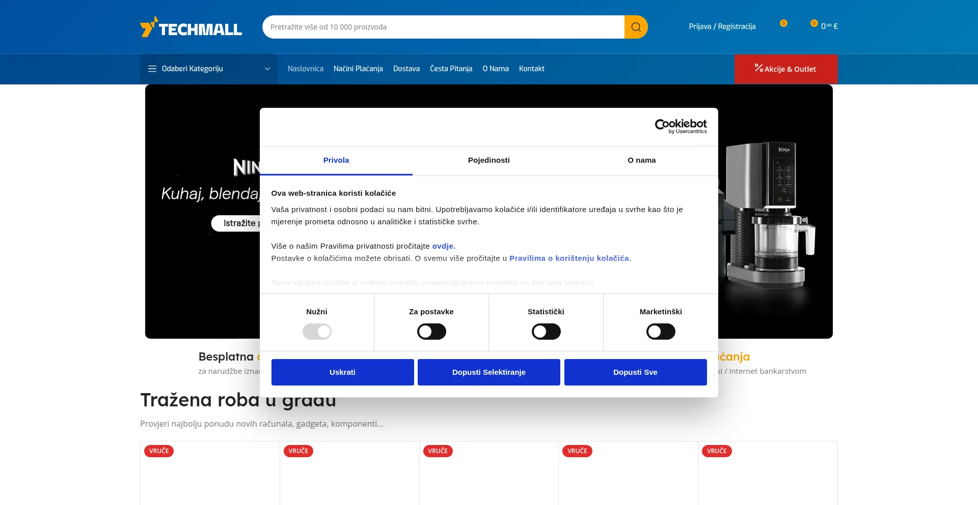 El sitio web implementa mecanismos de consentimiento de cookies en cumplimiento con regulaciones de privacidad como GDPR o CCPA. Esto demuestra que techmall.hr adhiere a estándares de protección de datos y proporciona a los usuarios control sobre prácticas de recolección de datos personales.