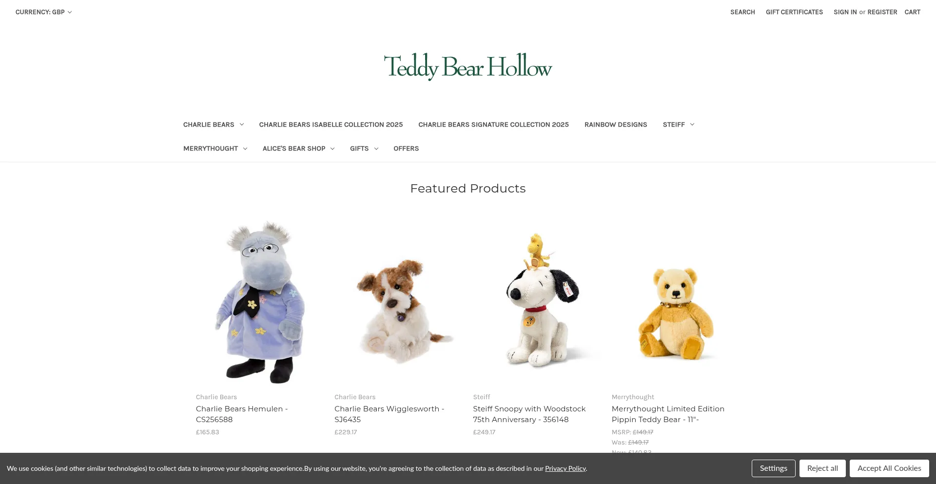 Teddy Bear Hollow – Collectable Teddy Bears from Steiff, Charlie Bears, Merrythought.