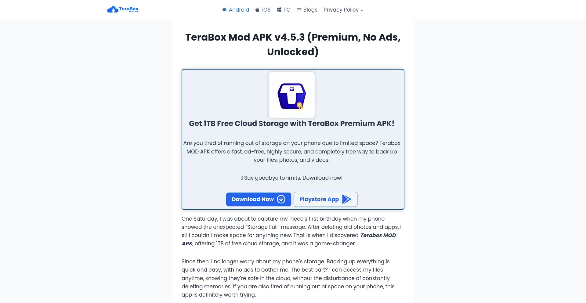 Get unlimited cloud storage with TeraBox Mod APK! No ads, fast downloads, and more premium features. Download the latest version now for free!