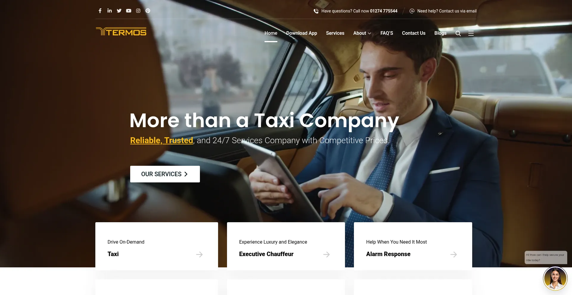 Termos provides taxi services, chauffeur hire, keyholding, and security solutions in Yorkshire, West Midlands, & London. Call 01274775544