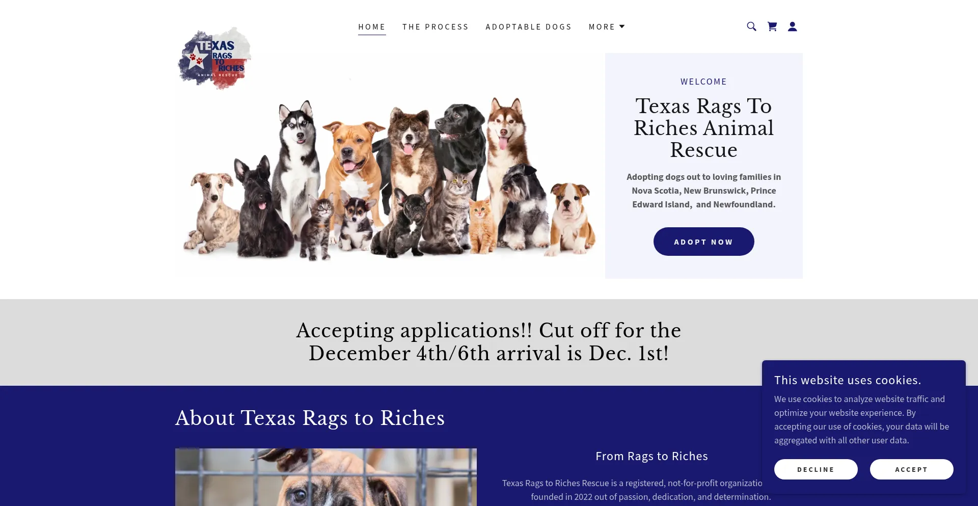Dog Adoptions for Nova Scotia, New Brunswick and Newfoundland with Texas Rags to Riches