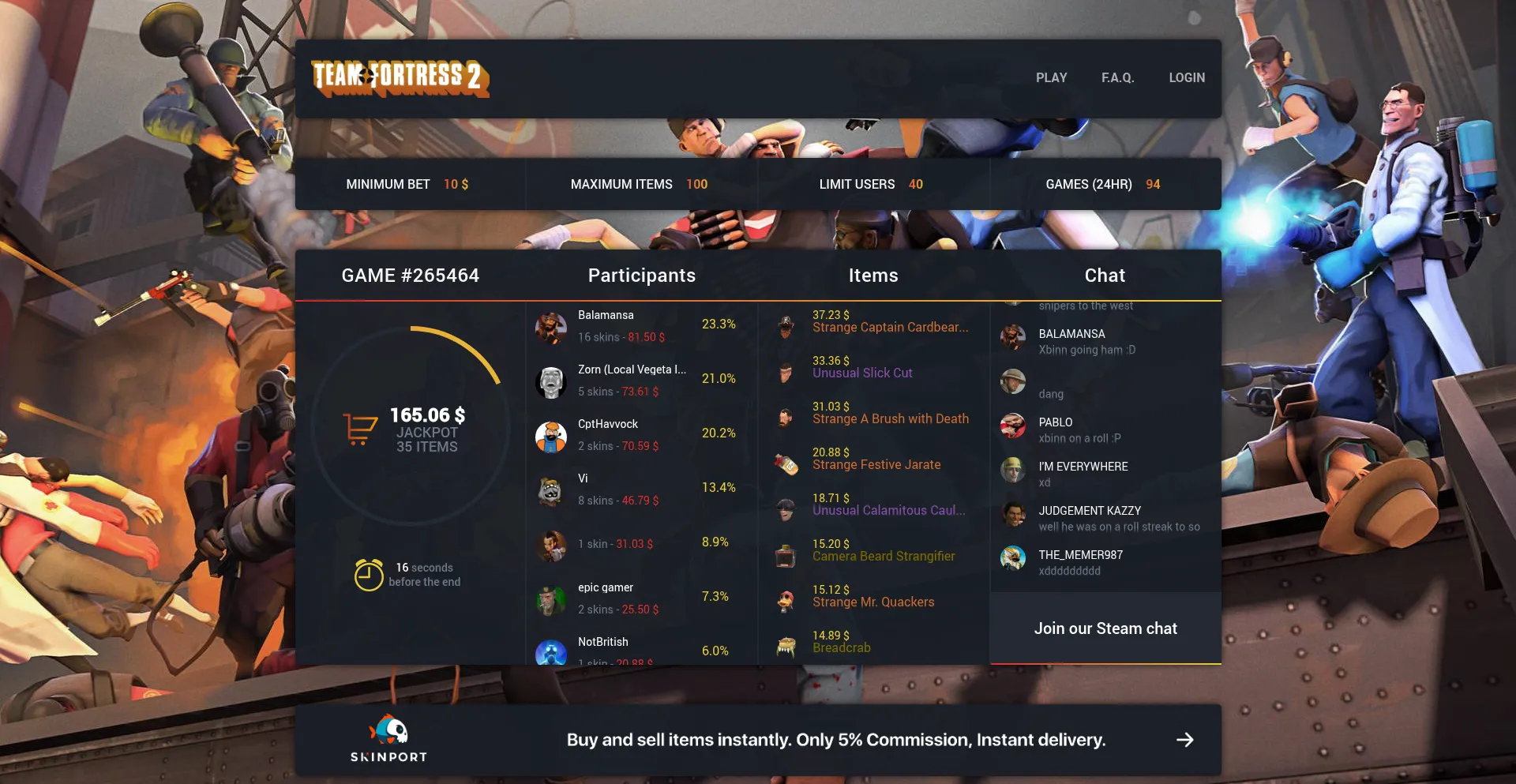 Want to win Team Fortress 2 Items? Bet items on tf2brilliance.com, the biggest and most trusted Team Fortress 2 gambling site. Win your dream items at tf2brilliance.com!