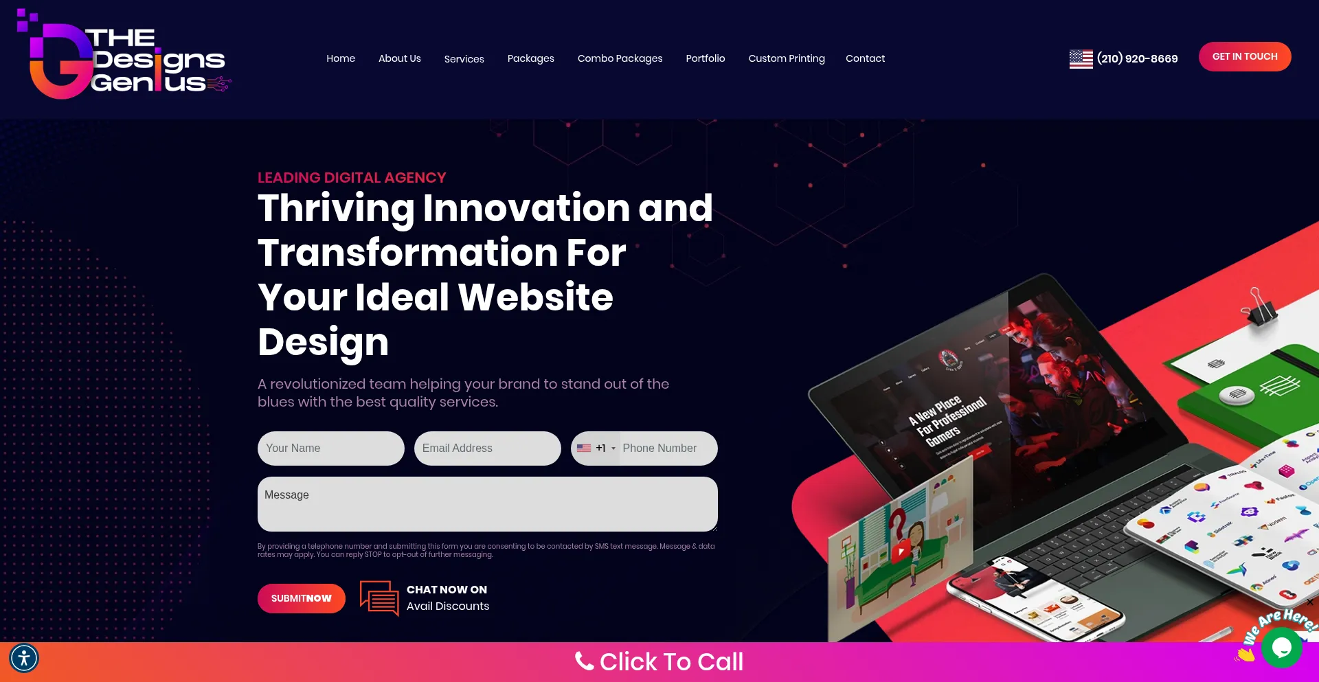 El sitio web implementa formularios de recolección de datos solicitando información personal incluyendo nombres, direcciones de correo electrónico, números de teléfono u otros detalles sensibles. Los usuarios deben verificar la legitimidad de thedesignsgenius.com y revisar políticas de privacidad antes de enviar datos personales.