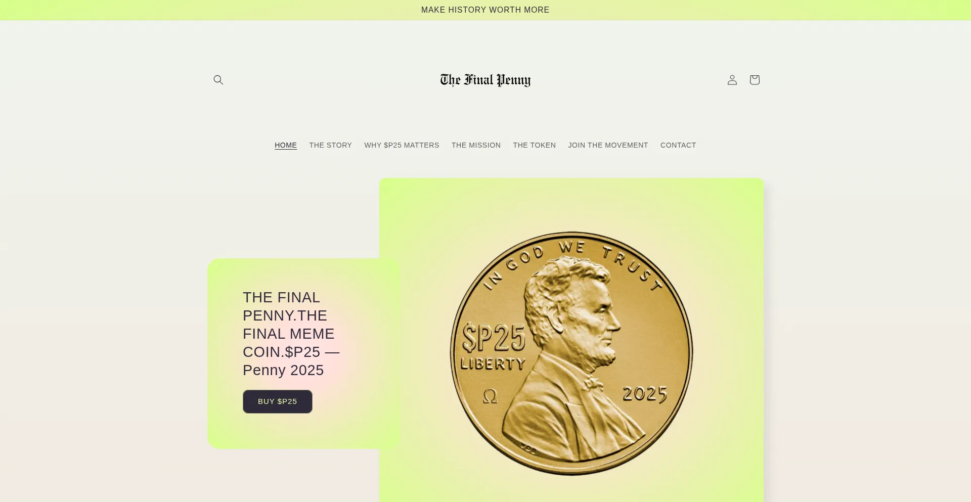 Introducing $P25: The Final Penny. A meme coin honoring the last U.S. penny ever minted. Culture, community, and crypto collide. Be part of the story.