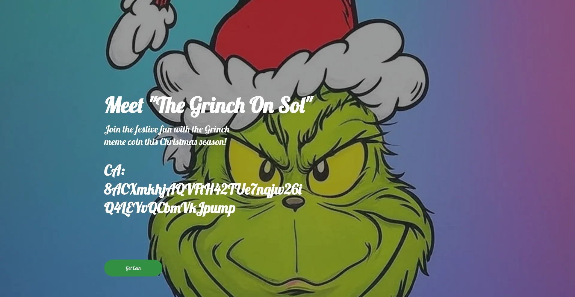 Join the holiday cheer with The Grinch, a Christmas-themed meme coin inspired by the classic story. Celebrate the season with crypto fun and festive vibes.