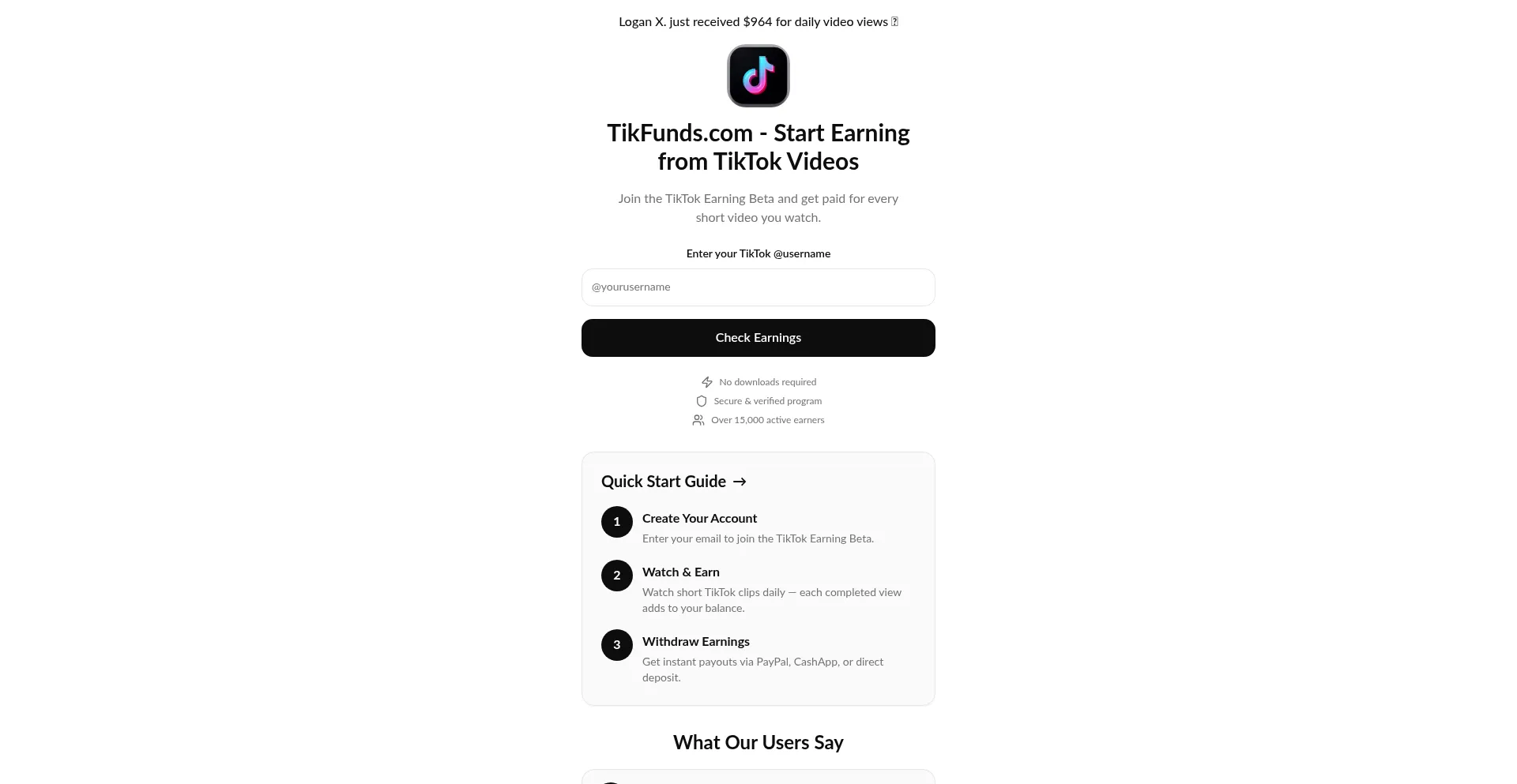 Join TikFunds and earn money watching TikTok videos. Get paid up to $1000/week with instant PayPal payouts. Start earning from TikTok now!
