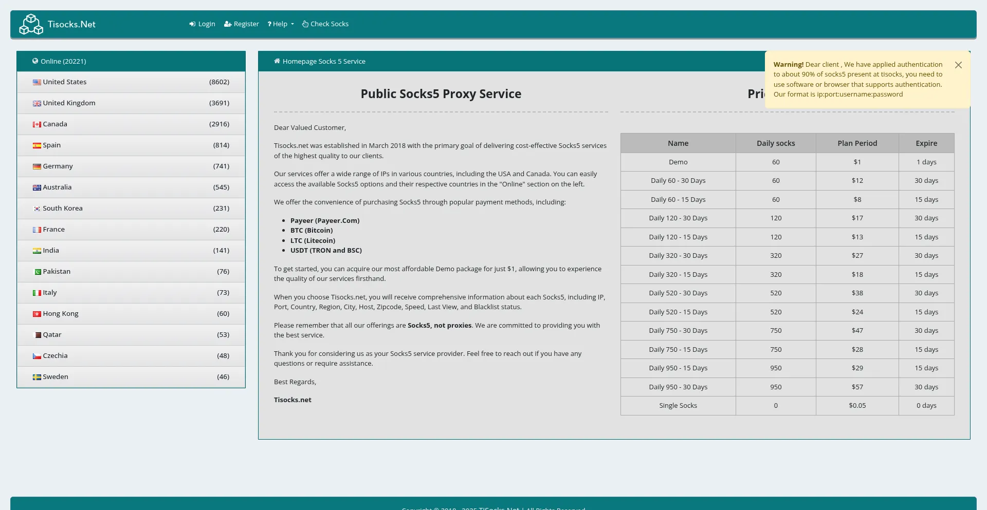 TiSocks.Net - Premium Socks5 Service