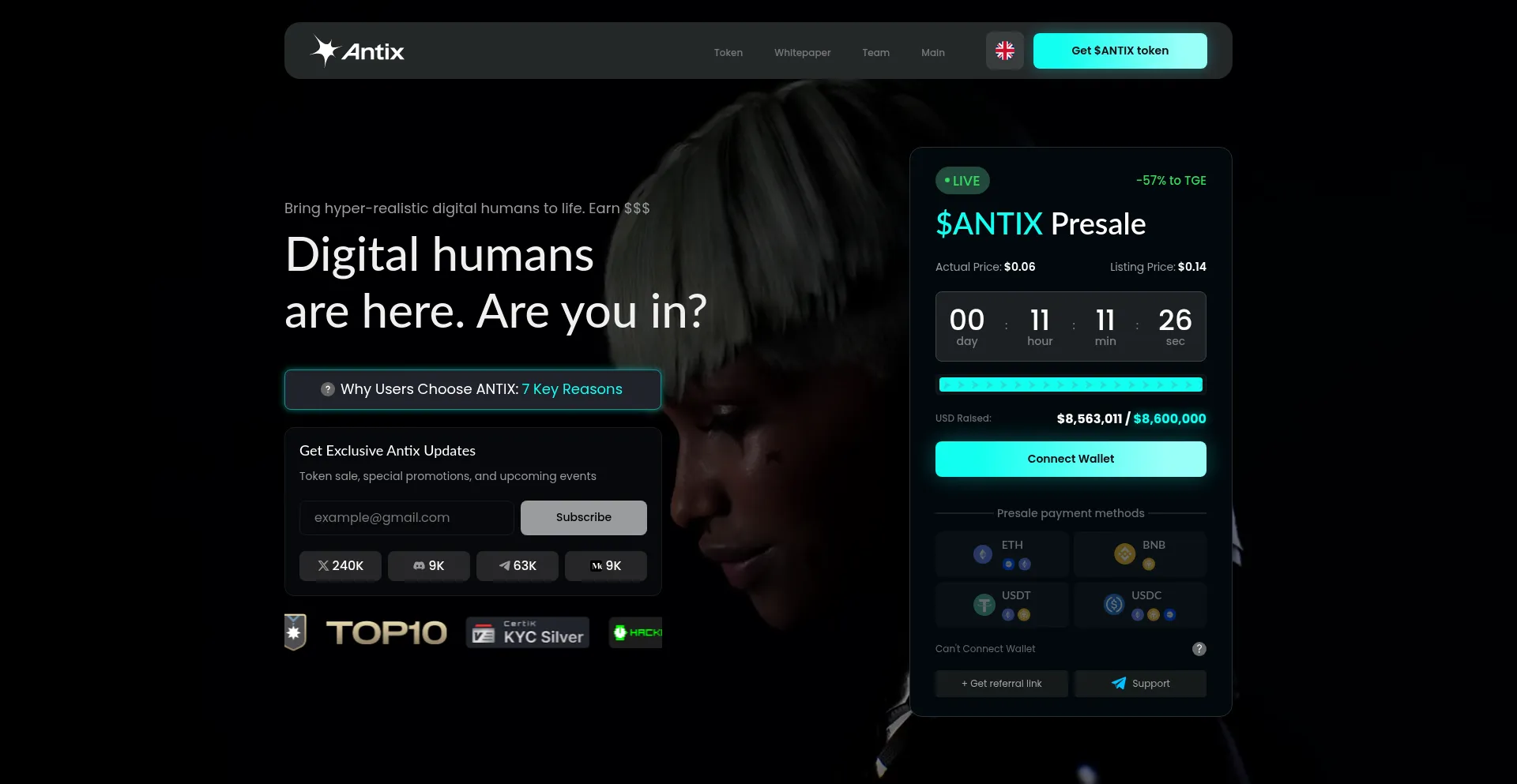 La presencia de enlaces de redes sociales en el sitio web indica que token.antix.in mantiene cuentas oficiales en redes sociales, lo que es un indicador positivo de credibilidad y compromiso.