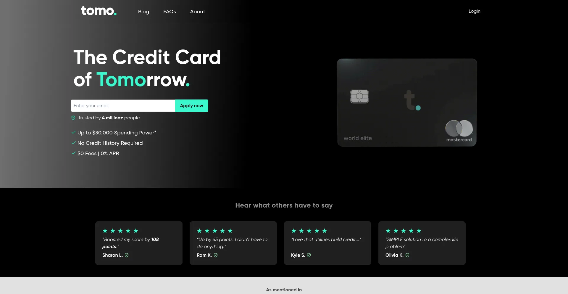 TomoCredit – No Credit Score Needed | All-New Black Card