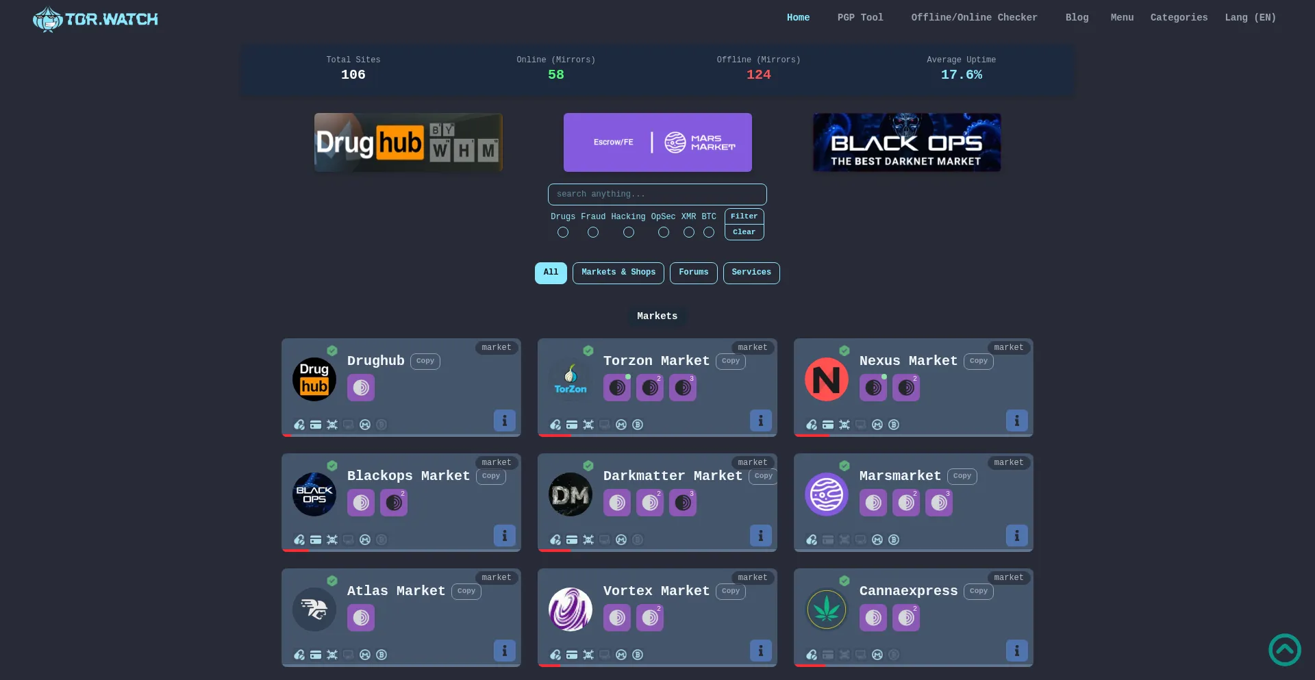 TorWatch provides verified Darknet Market Links, real-time status monitoring, and secure onion URLs for hidden web services. Access reliable links for top dark markets safely. T...