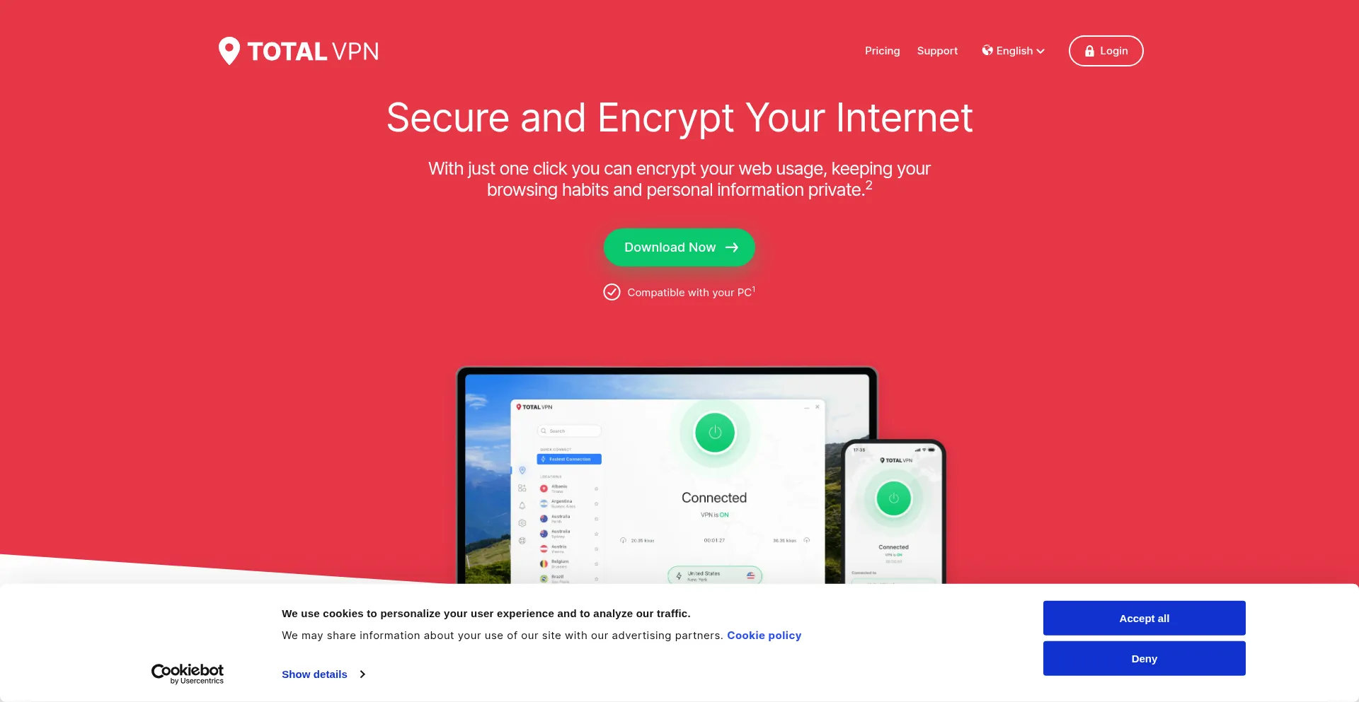 Secure your internet with Total VPN. Enjoy fast, private, and unlimited browsing on any device with our easy-to-use VPN service.