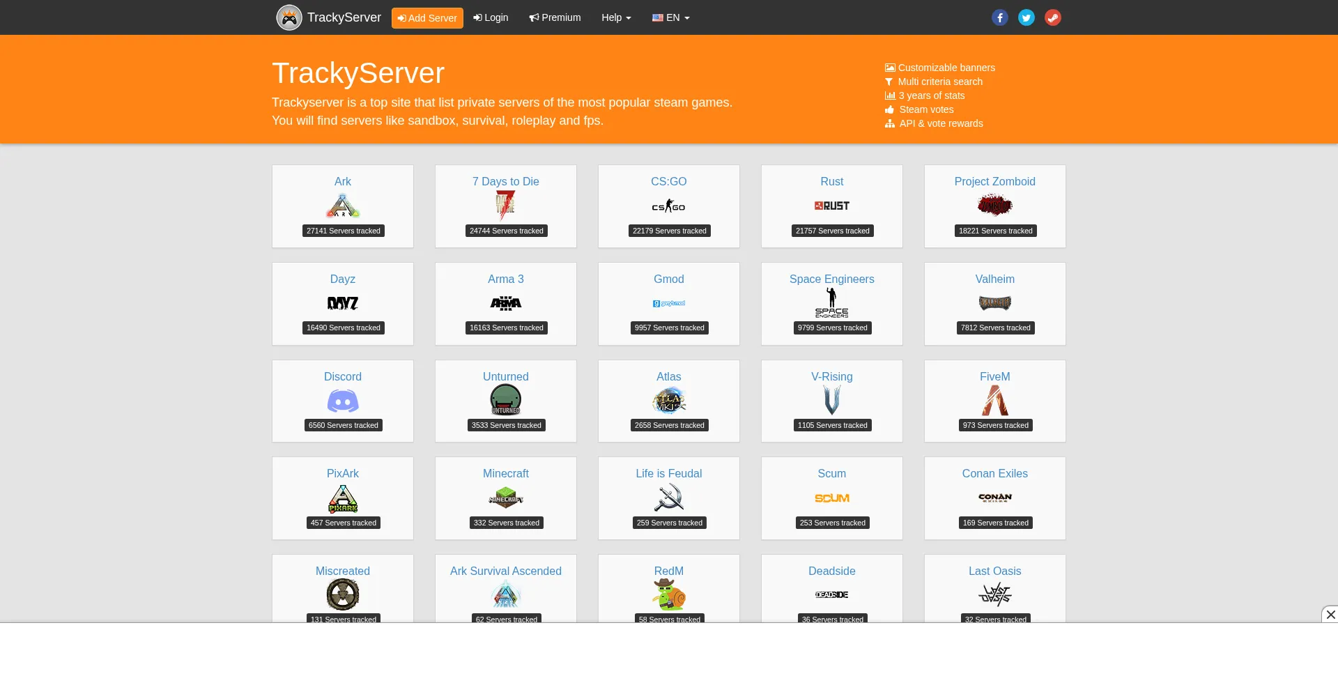 TrackyServer - Servers list, Search, Ranking, Banners