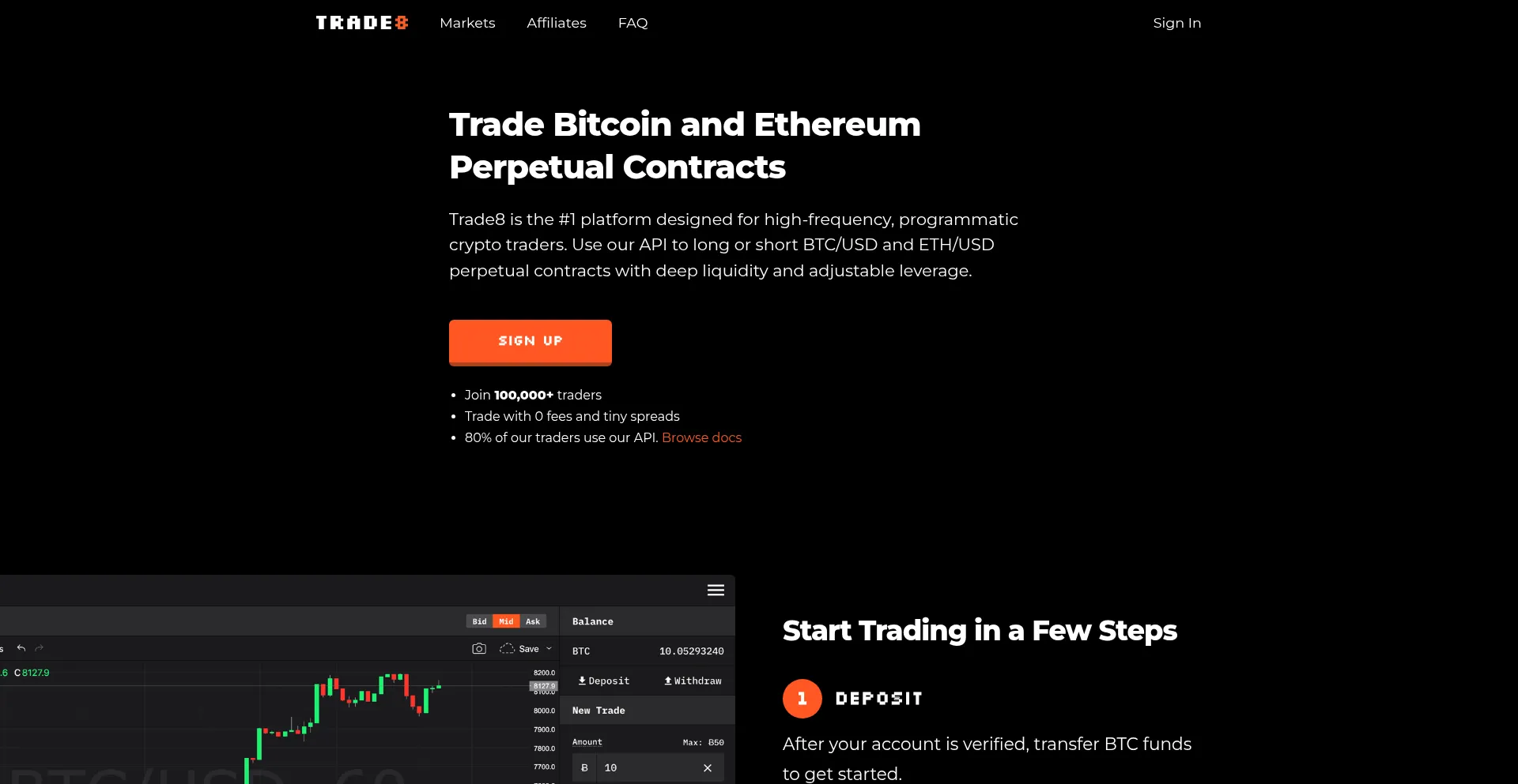Trade8 · Bitcoin and Ethereum Perpetuals Trading · API Trading