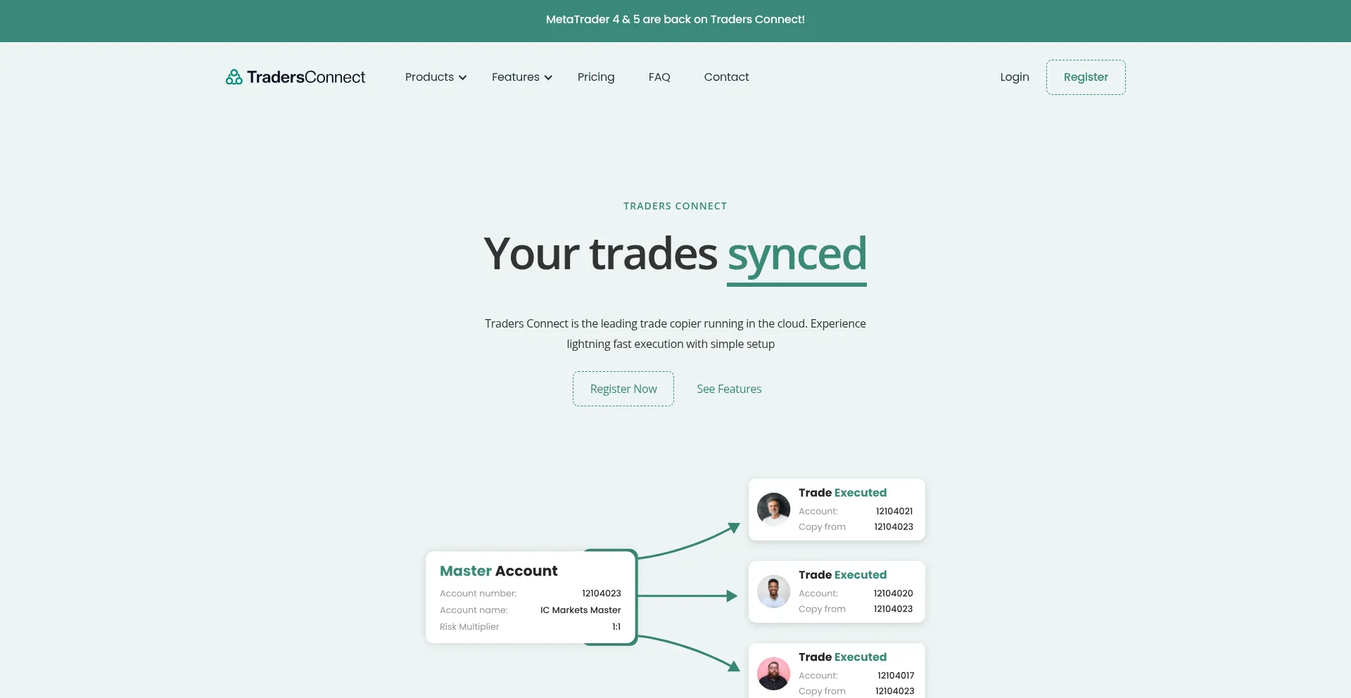 Traders Connect is the leading Cloud based Trade Copier for Platform 4, Platform 5 and cTrader. With the fastest copy execution. Enhanced features.