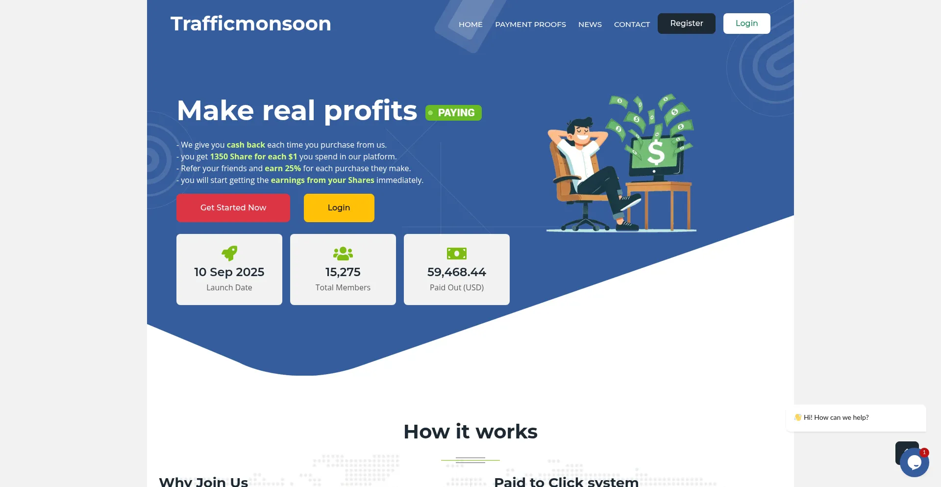 With Trafficmonsoon.com you « # » earn real money or you can show your adverts to the world. Welcome to Trafficmonsoon..com!