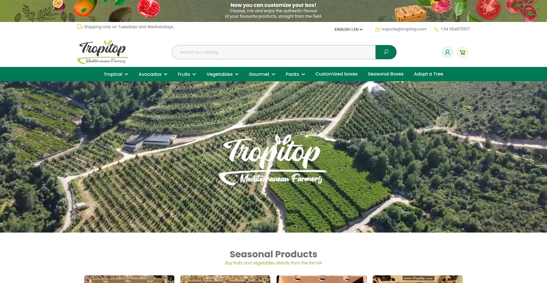 At Tropitop you can buy fruit and vegetables directly from the farmer. Boxes and baskets with the best flavour in our online fruit and vegetable shop.