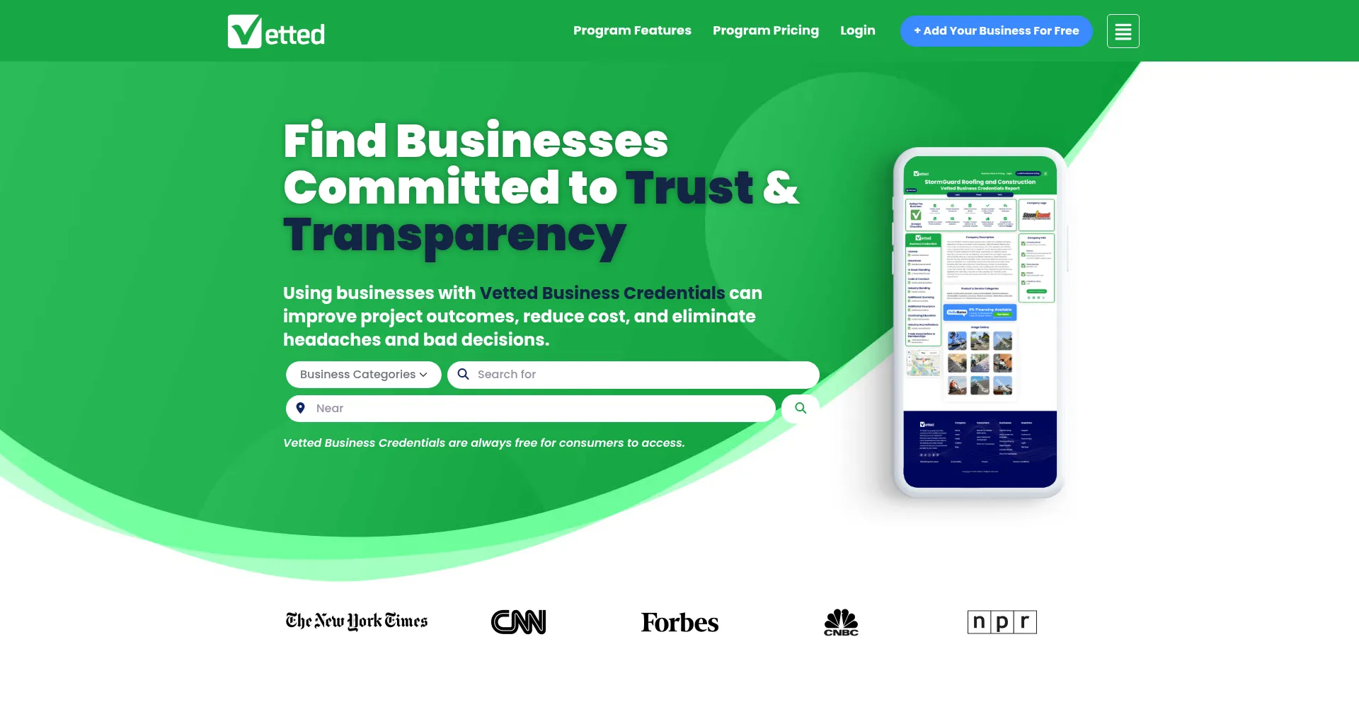Find Businesses Committed to Trust & Transparency. Using businesses with Vetted Business Credentials can improve project outcomes, reduce cost, and eliminate headaches and bad d...