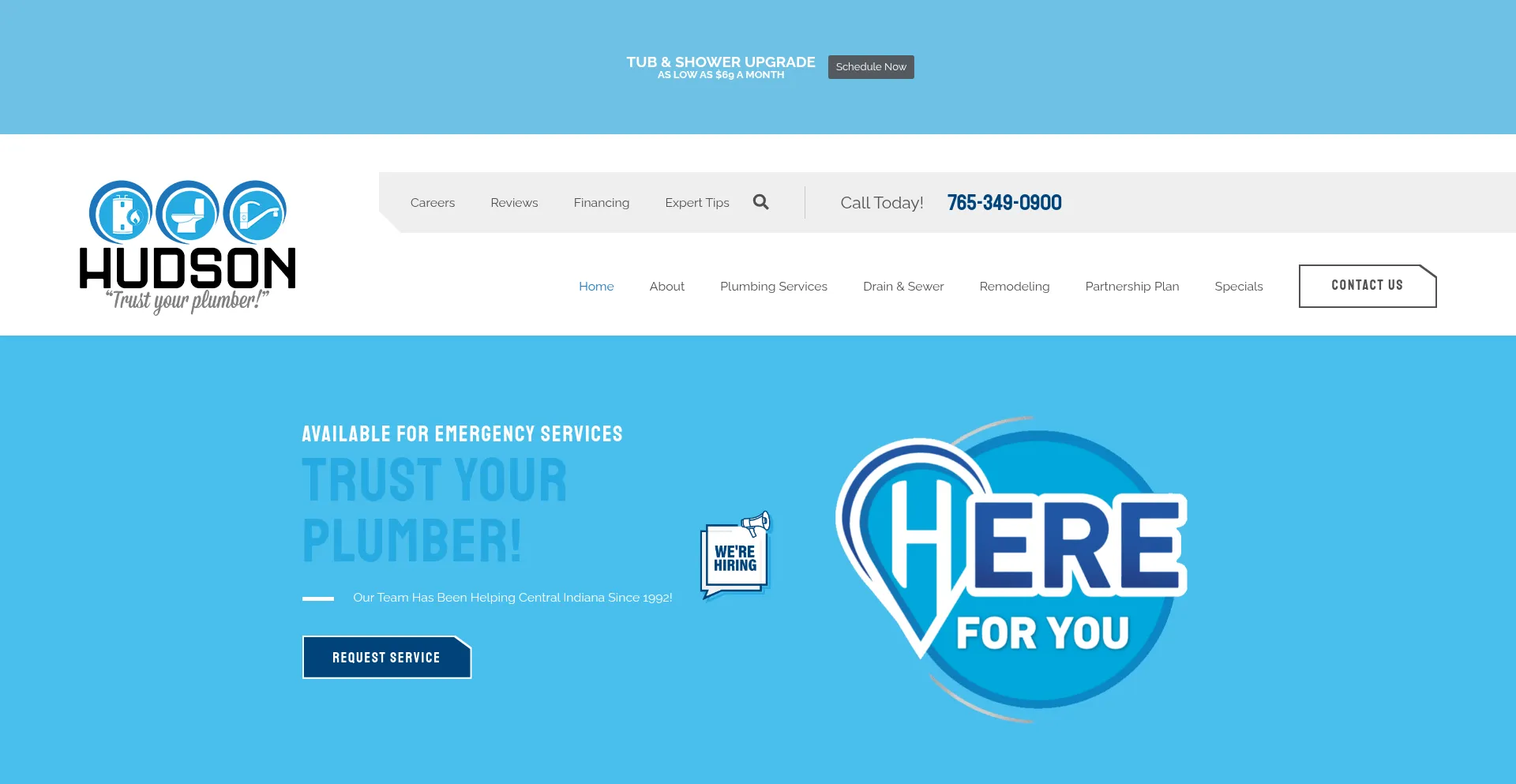Hudson Plumbing is your trusted plumbing company in the Martinsville & Bedford, IN area. Call us today at (765) 349-0900 for all your plumbing needs!